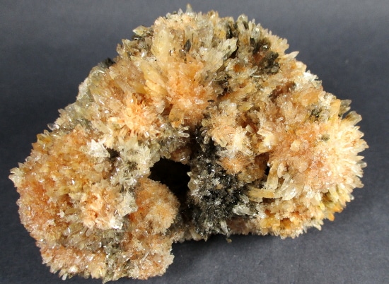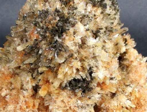 Creedite is a rare hydroxylhalide mineral that formed from the oxidation of fluorite ore deposits. It ranges in color from colorless, white, violet to orange. Creedite gets it’s name from Creede Quadrangle Colorado where it was first found 1916. It was later also found in Nevada, California and Chihuahua, Mexico. Other world locations are in Eastern Europe in Tajikistan and Kazakhstan.