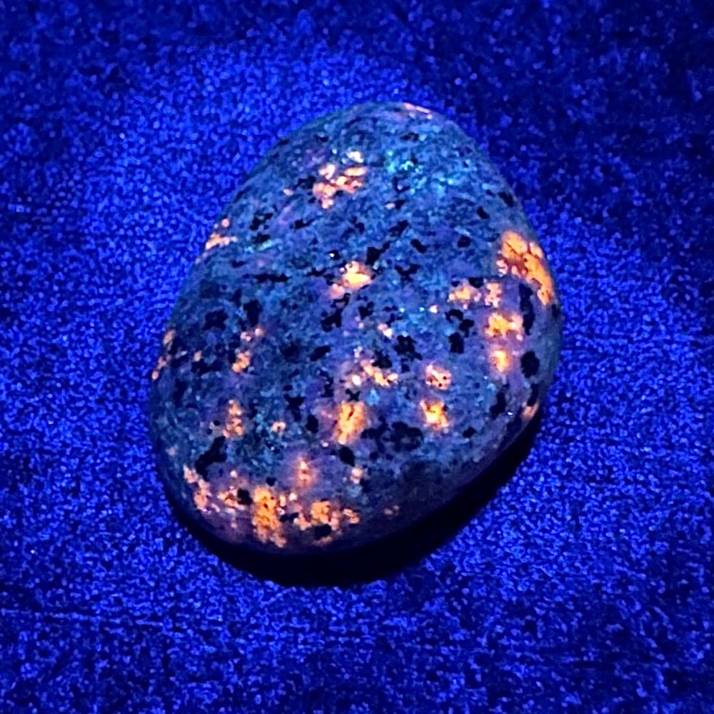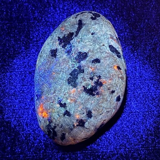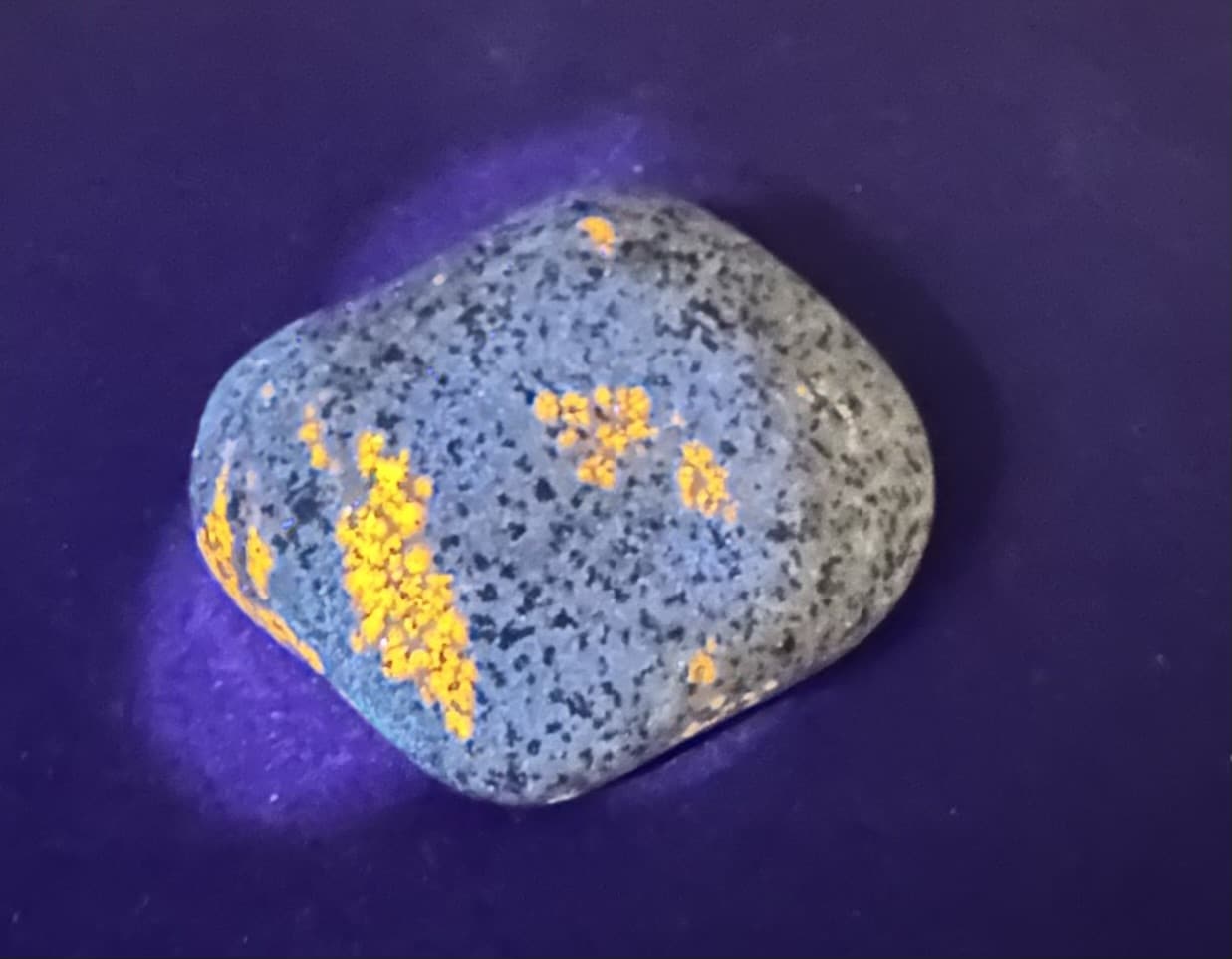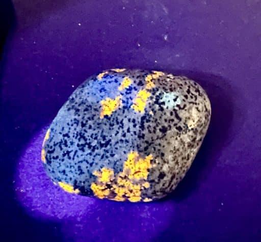 Yooperlites were recently discovered on the shores of Lake Superior in Michigan’s Upper Peninsula by Eric Rintamaki. They are syenite rocks that contain sodalite, a fluorescent mineral that has never before been identified in Michigan. The sodalite is what gives the Yooperlites their glow under a UV lamp.  Yooperlite is derived from the nick name Yoopers which is what the folks in that area call themselves.