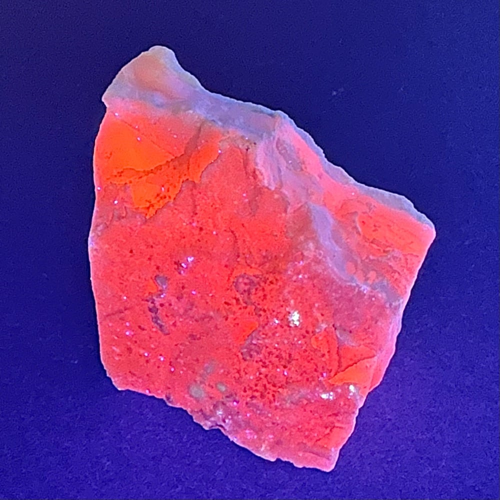 Appearance: It has a pink color that varies from pale to darker pink in normal light. Under SW/UV it shows a brilliant orange color. Also, will fluoresce under a LW/UV.