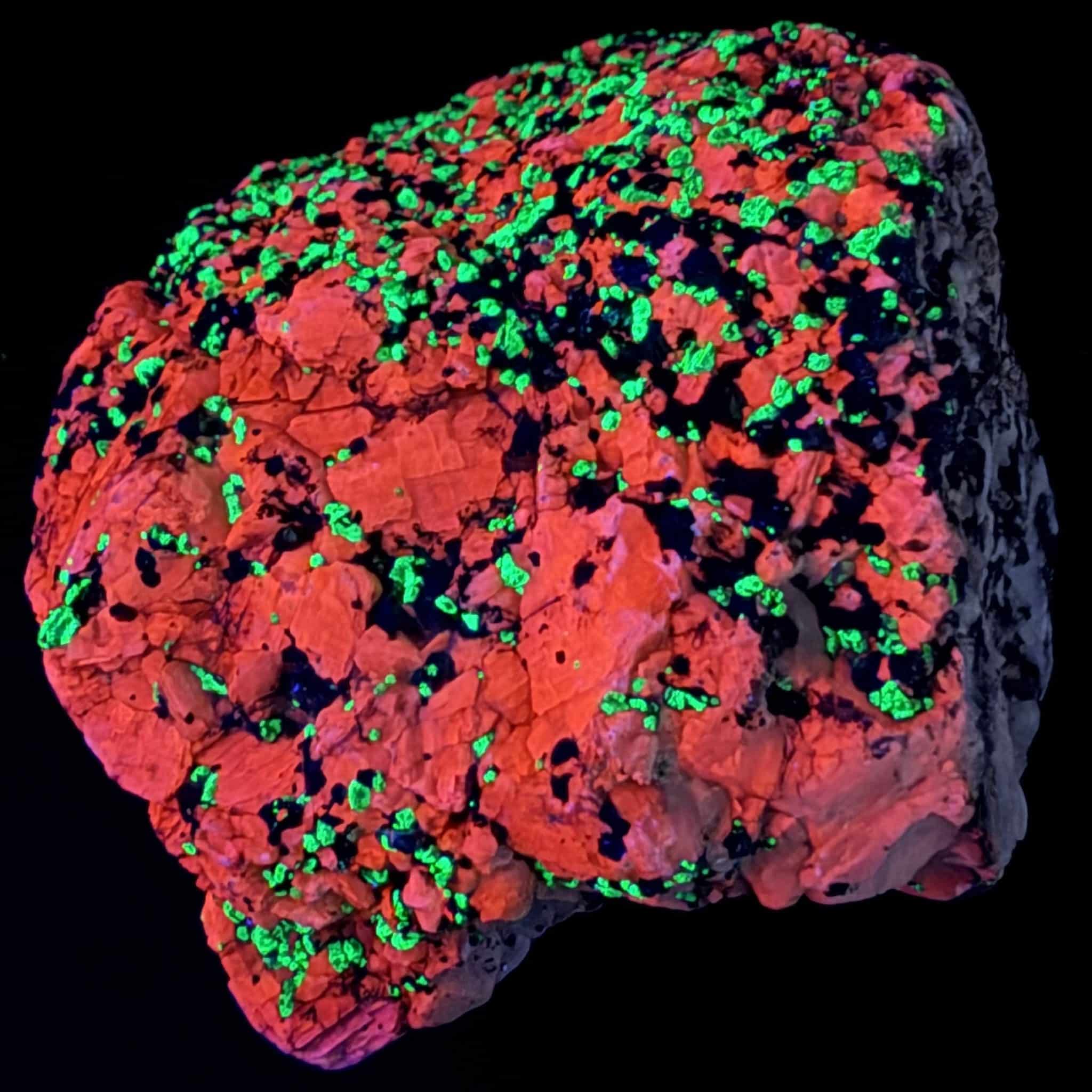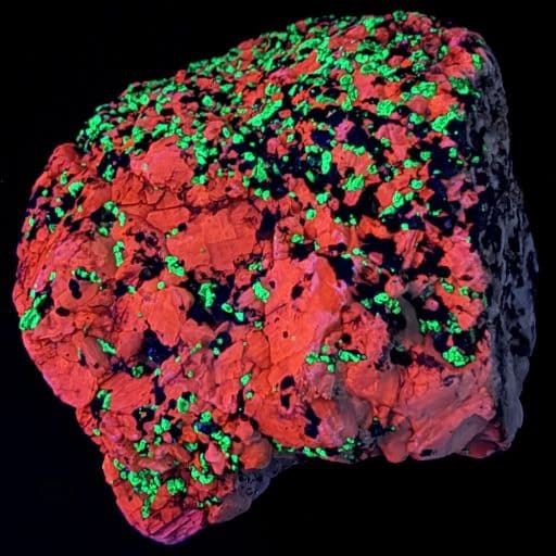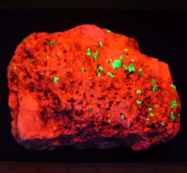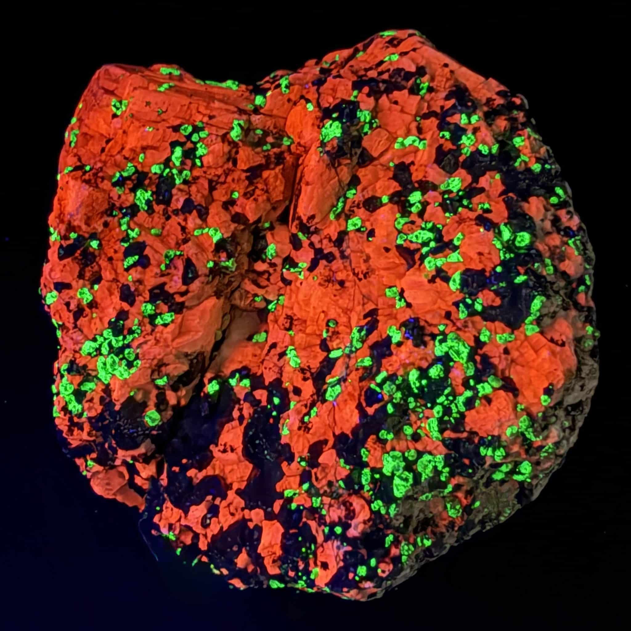 Willemite is a rare nesosilicate and zinc mineral found principally in Franklin, New Jersey with Franklinite and Zincite. Willemite can have a variety of colors from white, colorless, reddish, green, yellow, orange and black. It is known for its brilliant green fluorescence.