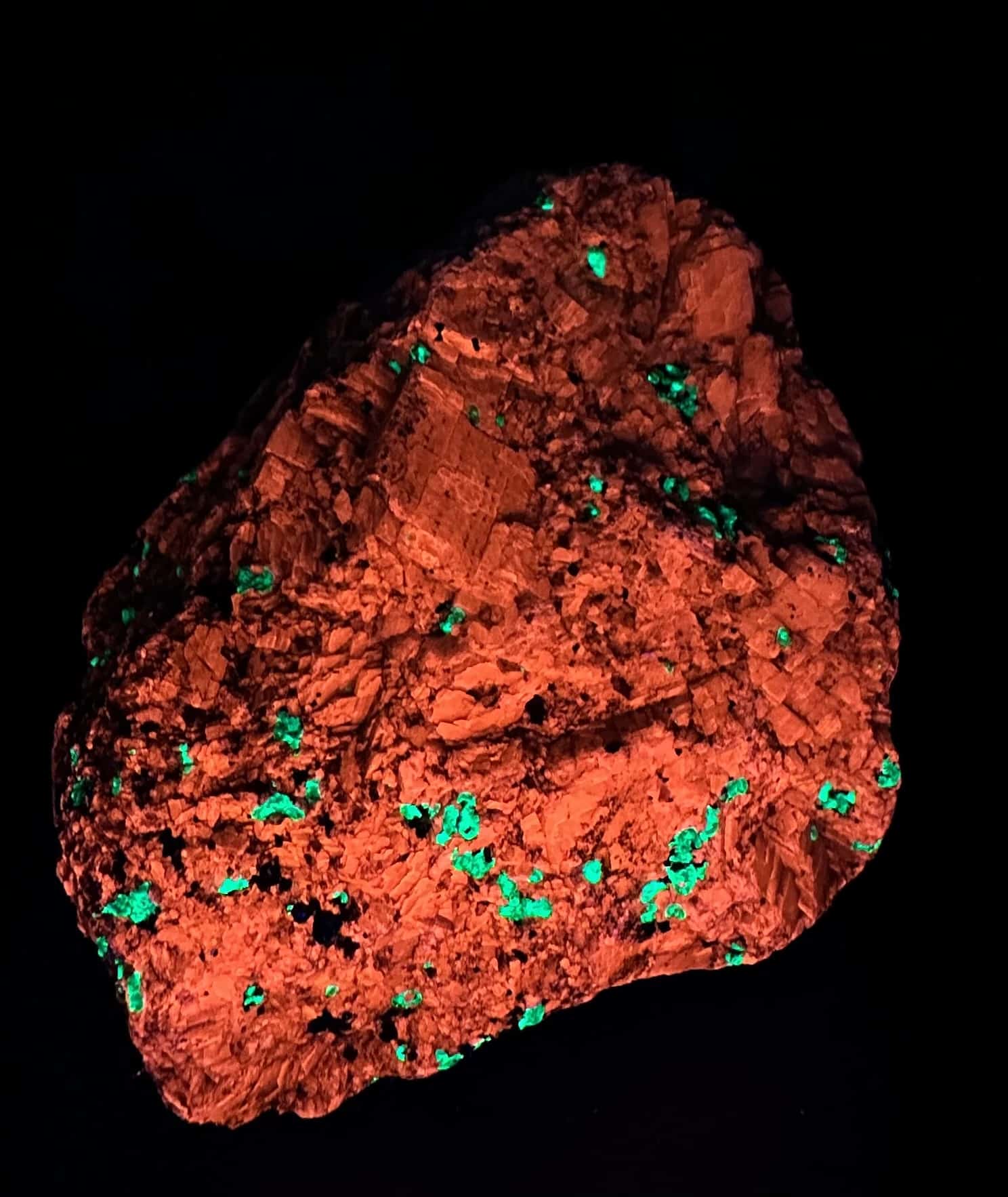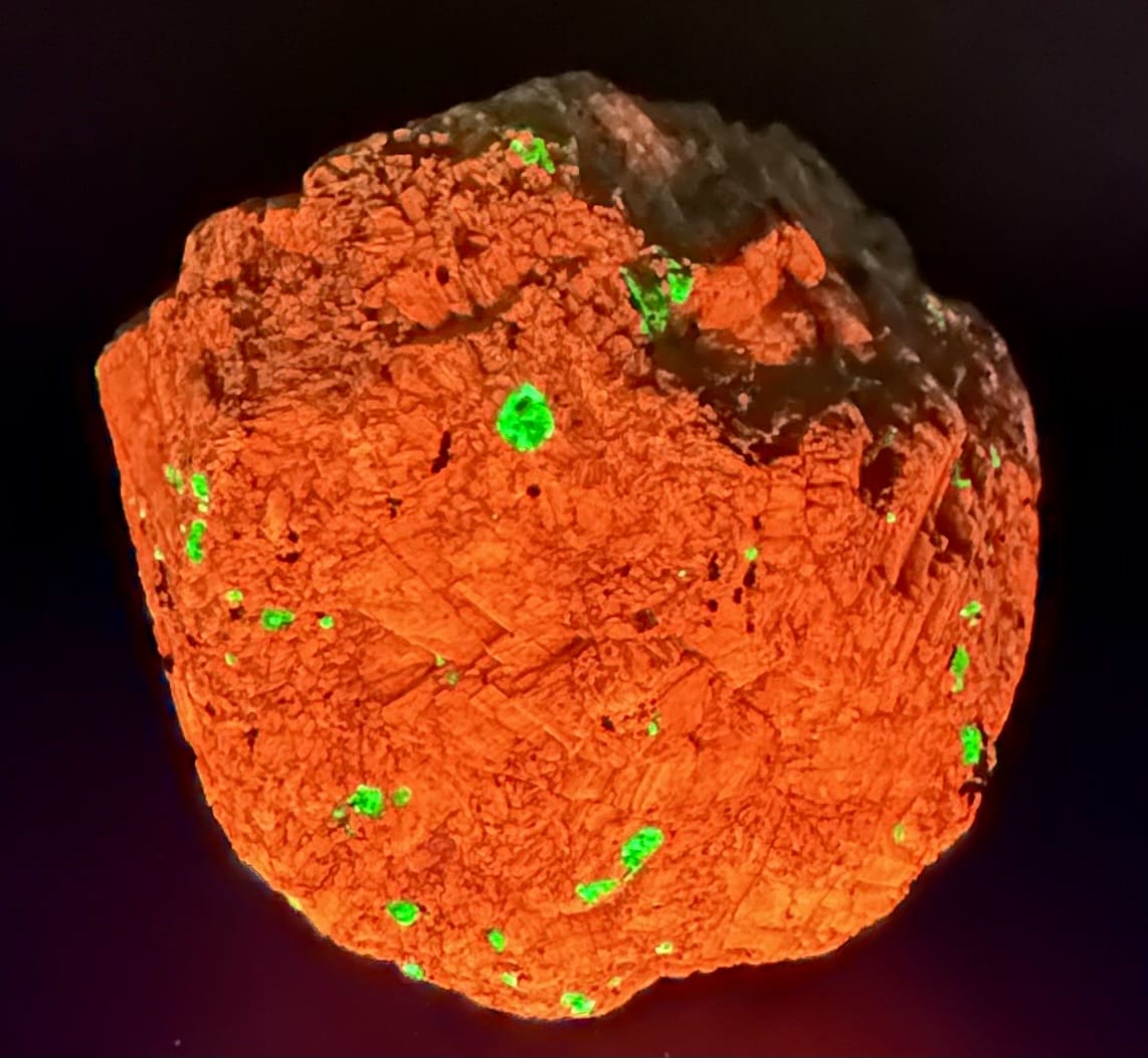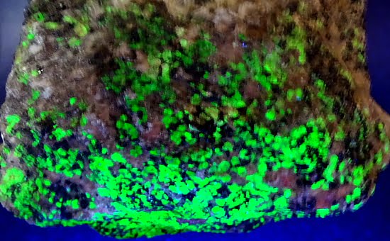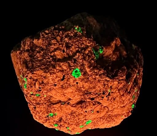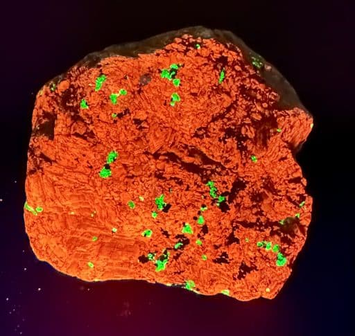 Willemite is a rare nesosilicate and zinc mineral found principally in Franklin, New Jersey with Franklinite and Zincite. Willemite can have a variety of colors from white, colorless, reddish, green, yellow, orange and black. It is known for its brilliant green fluorescence.