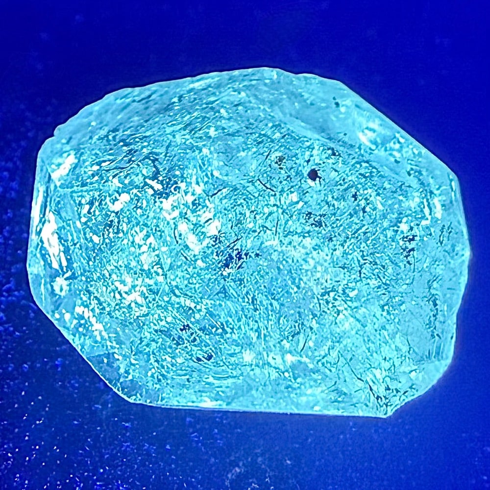 Appearance:  It has neat inclusions, “”rainbow” reflections, great clarity and due to the Petroleum infused Quartz will fluoresce blue under a LW/UV light.  UV fluorescent (shot with uvBeast 365nm(nanometer) Black Light UV flashlight).