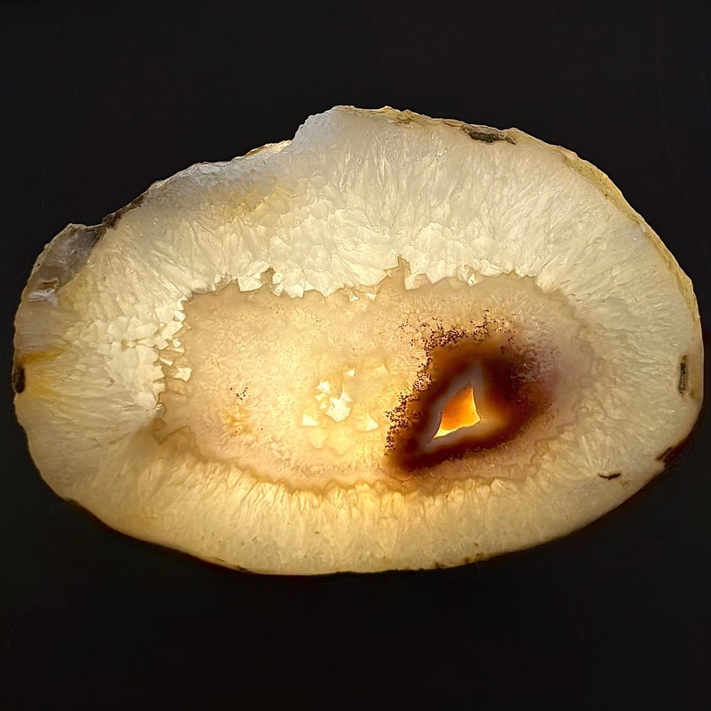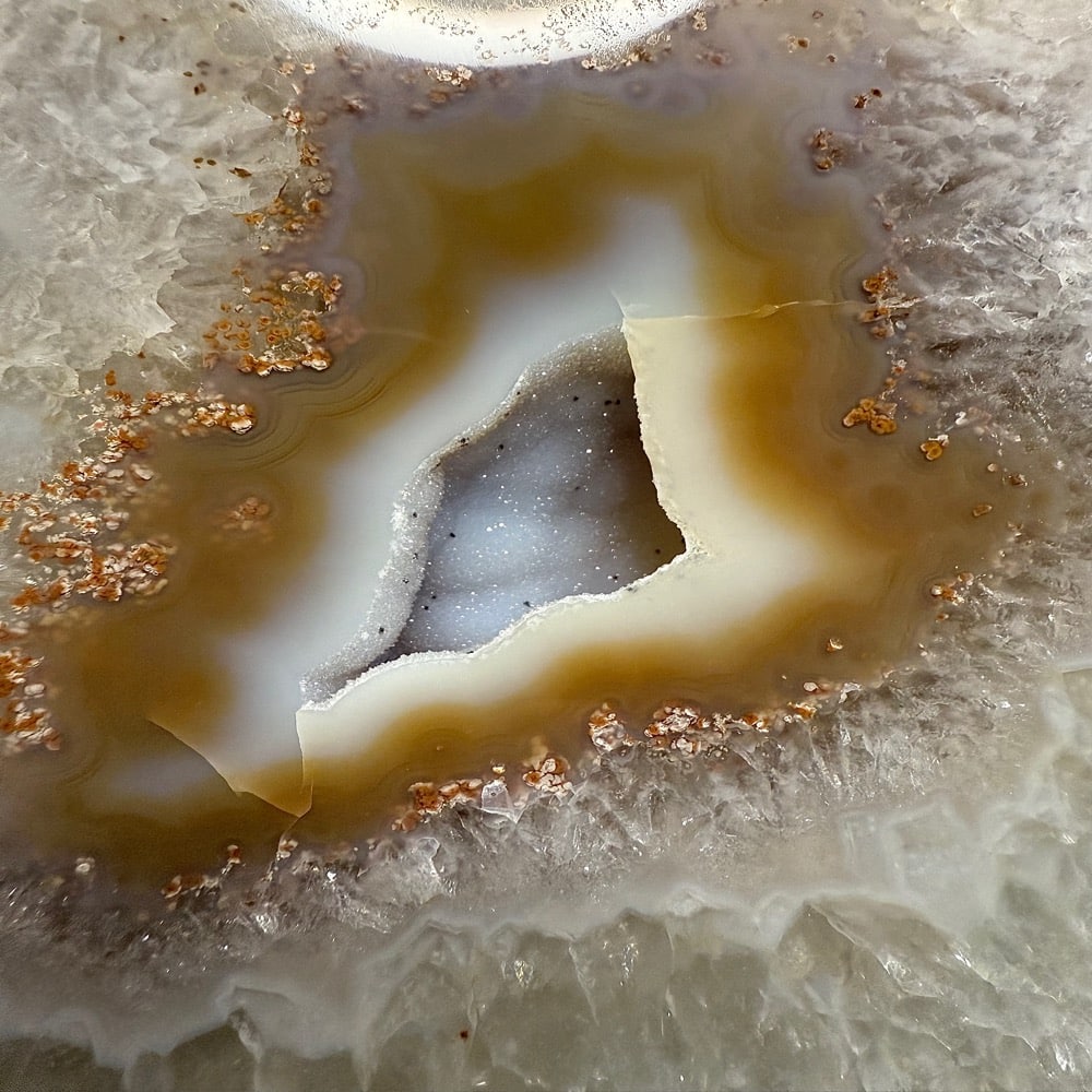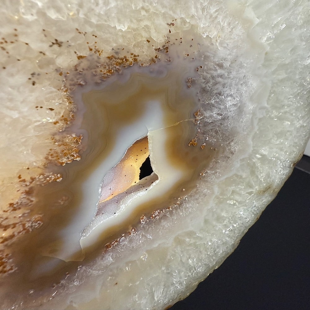 Appearance: Natural pastel colors with great banding, dazzling crystal and small crystal cavity.