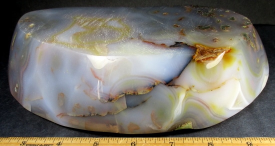 Marble is a metamorphic rock consisting of Limestone but mostly composed of Calcite.  It is used extensively for sculpture, building material and has many decorative uses.  The pure white Marble is probably the most common form known, but the characteristic swirls and veins of many colored Marble varieties are usually due to various mineral impurities such as Clay, Silt, Sand, Iron Oxides or Chert.