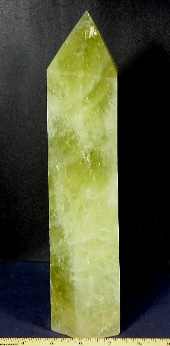 Citrine is any Quartz Crystal or cluster that is yellow or orange in color. Most Citrine, usually begins as Amethyst which becomes yellow due to heat treatments. True Citrine is often rarer but is hard to distinguish from the heat treated variety. It is widely distributed as a mineral, but fine, clear specimens that are suitable for cutting as ornamental stones.