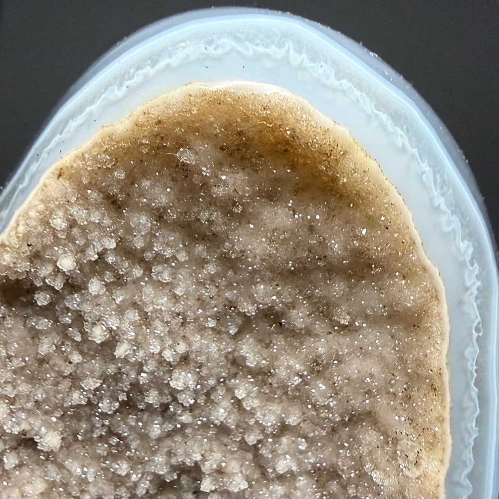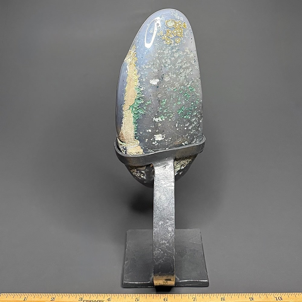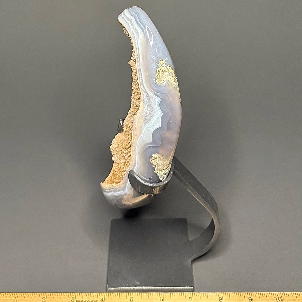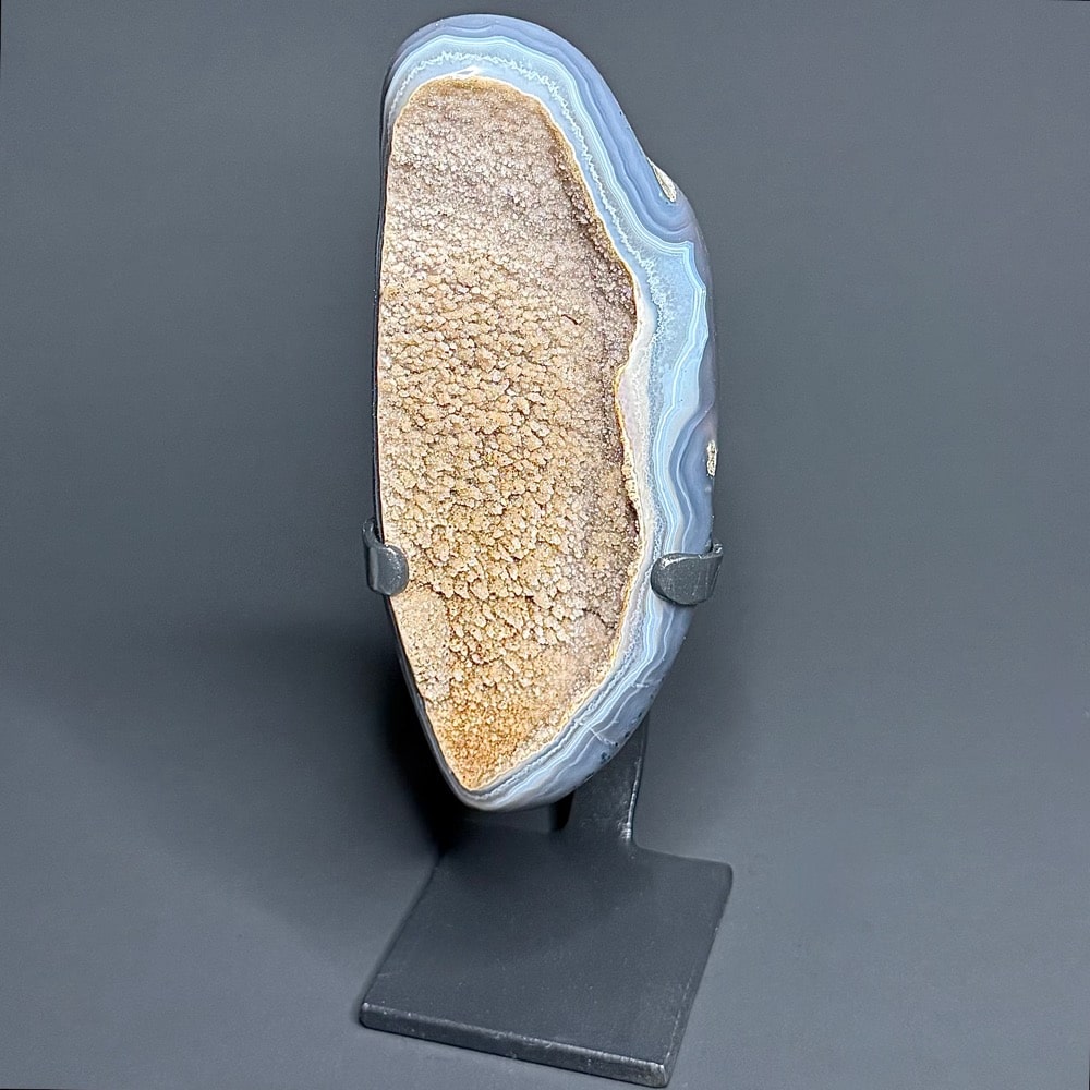 Appearance: It has a polished outer edge leaving the rest in its natural state with exceptional mesmerizing banding and dazzling Amethyst crystals.