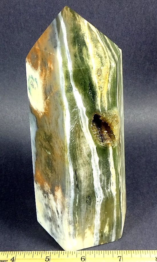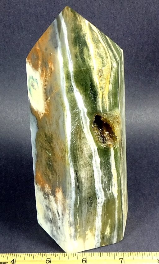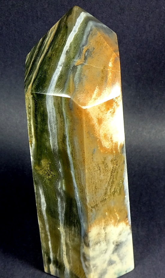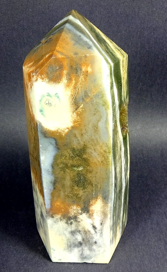 Jasper, also known as spotted stone, is an opaque, impure variety of Quartz that is usually red, yellow or brown in color. The mineral breaks with a smooth surface and is used for ornamentation or as a gemstone. It can be highly polished and is used for vases, seals, and other decorative items.