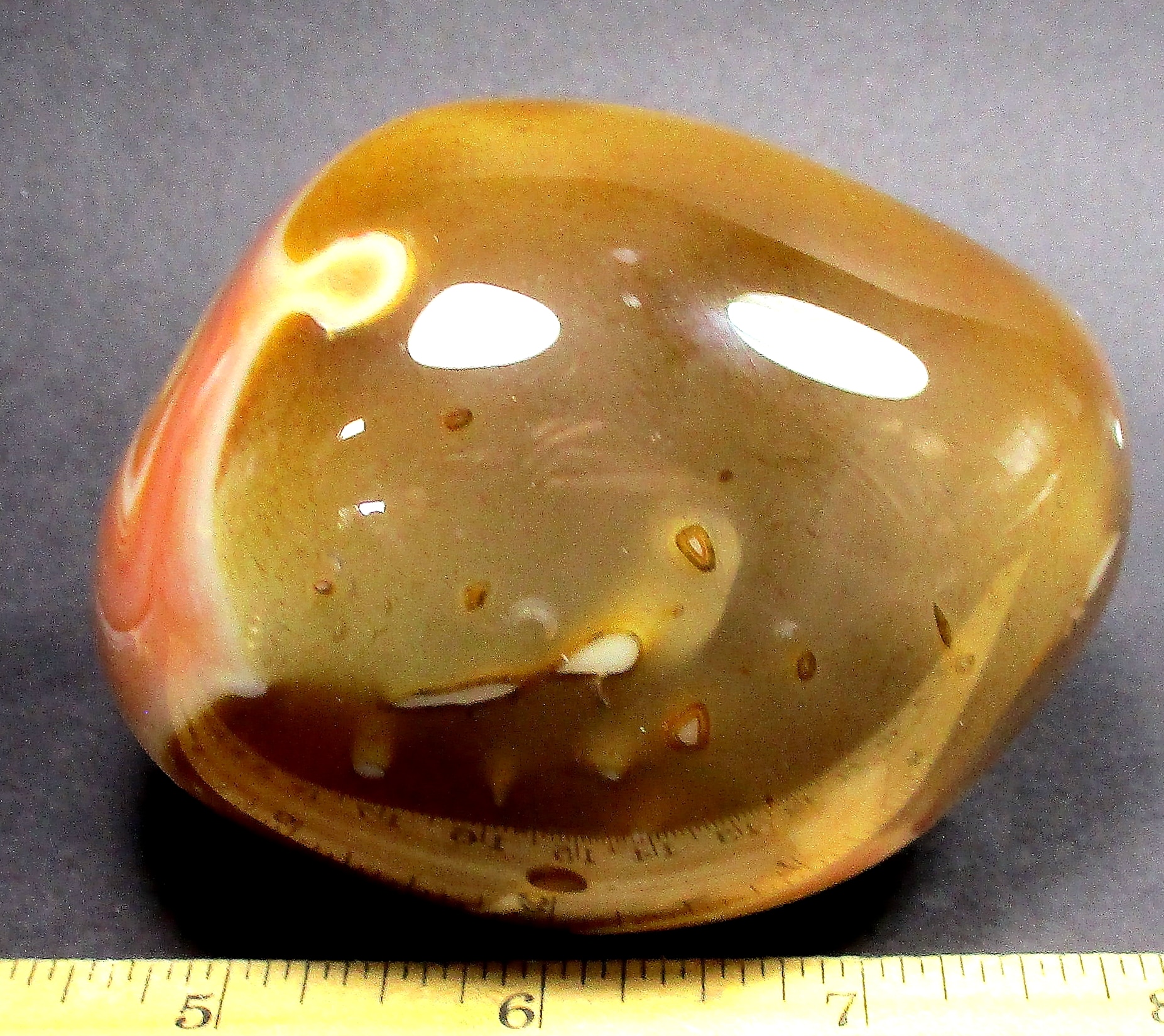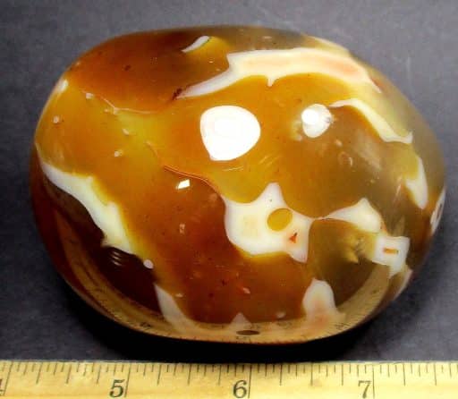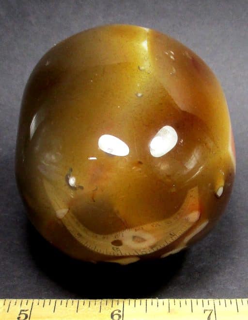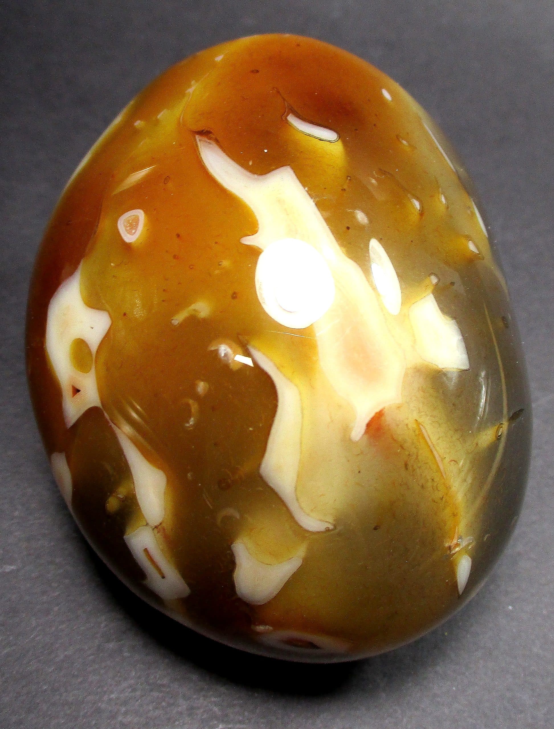 Carnelian is a red or reddish-brown variant of Chalcedony but also may come in the colors of orange and pink. It is quite common and usually found in translucent pebble form. It is found in several areas of Europe, Iceland and Madagascar.