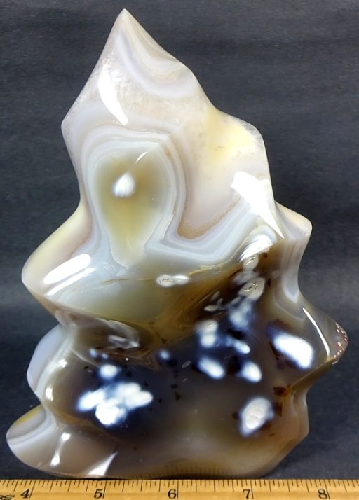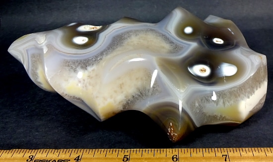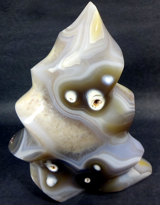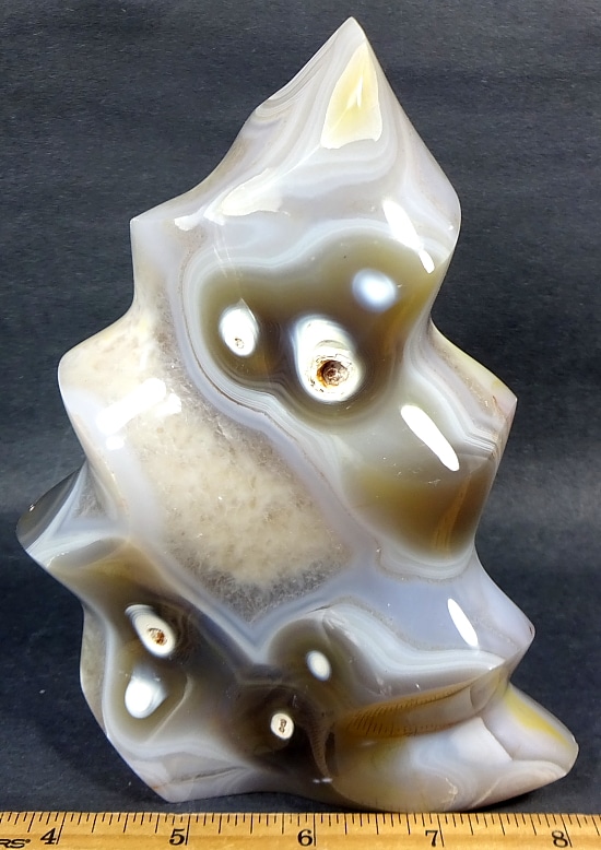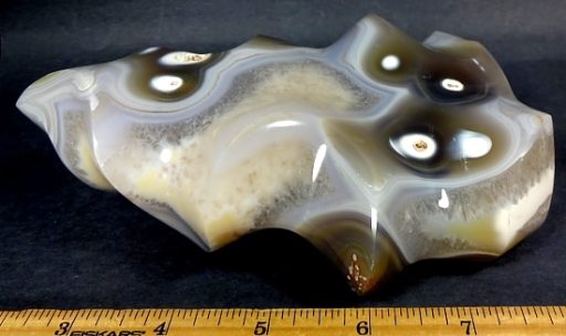 Agates mostly occur as nodules in volcanic rocks or waters containing Silica in solution which is possibly derived from the decomposition of Silicates in the lava. The Siliceous matter is deposited in regular layers resulting in the banded or striped formation. It is very unlikely that you would ever find an exact duplicate of any type of Agate, Brazilian or other.