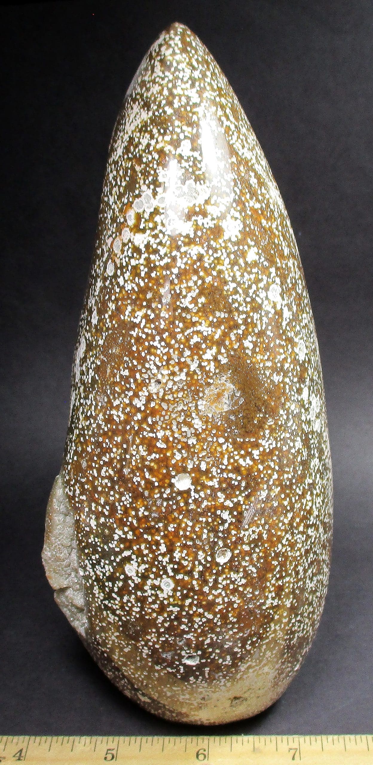 Here is a really great find!!  A gorgeous Sea Jasper Free Form from Madagascar.  It measures 3 5/8″ x 2 1/2″ x 5 1/2″ tall and has a highly polished finish on all sides. It has fabulous color, lots of “eyes”, crystal and cavities all in a marvelous design!  It’s very, very nice.