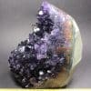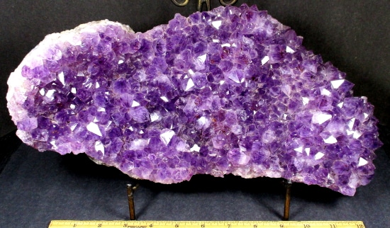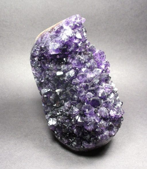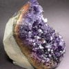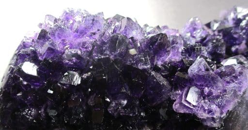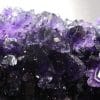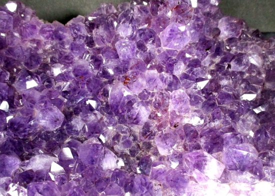 Amethyst is a purple variety of Quartz often used as an ornament. It occurs in color from a light, slightly pinkish violet to a deep grape purple. Upon exposure to heat, Amethyst generally becomes yellow, which some refer to as Citrine or “burnt” Amethyst. It is widely distributed as a mineral, but fine, clear specimens that are suitable for cutting as ornamental stones.