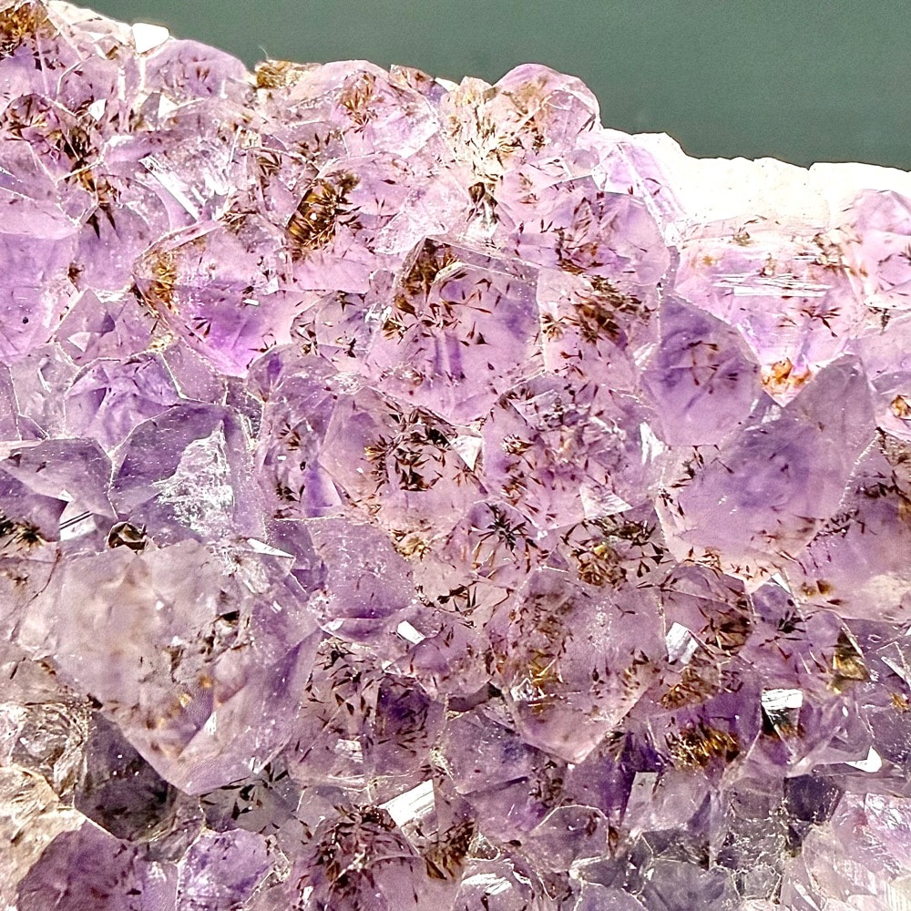 Appearance: Sparkly Amethyst crystals with high quality purple color. Loaded with Goethite.