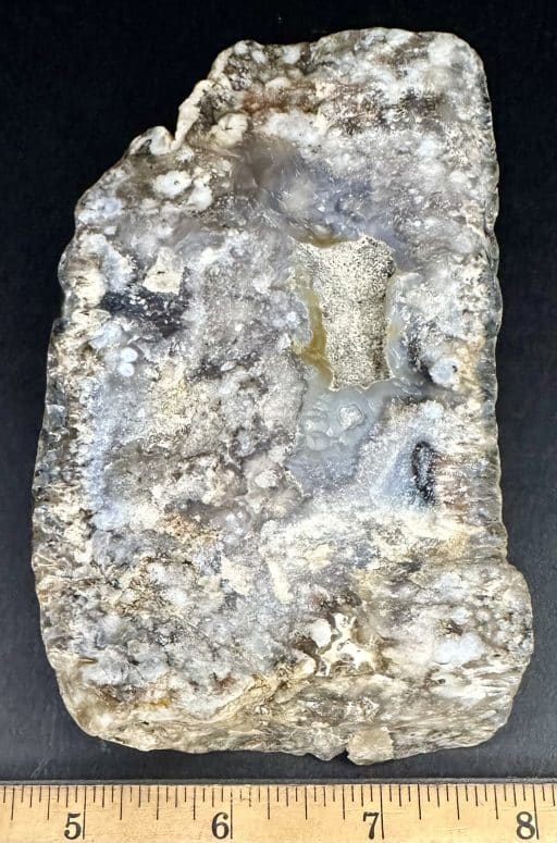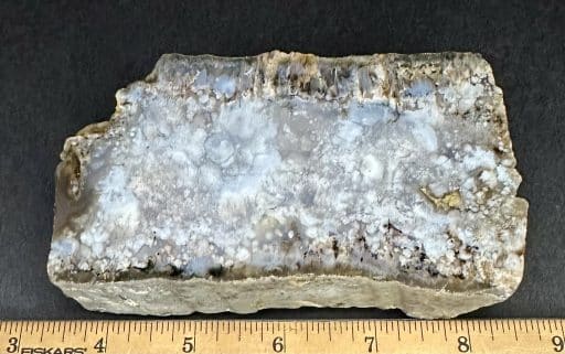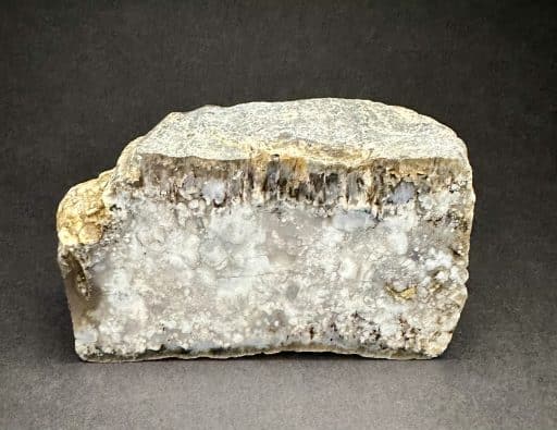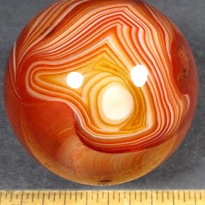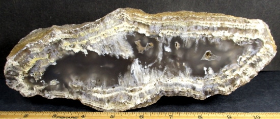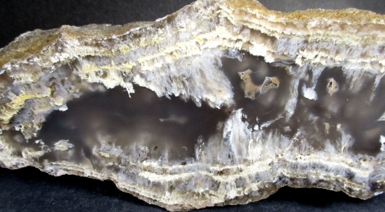 Agates mostly occur as nodules in volcanic rocks or waters containing silica in solution possibly derived from the decomposition of silicates in the lava. The siliceous matter is deposited in regular layers resulting in the banded or striped formation.