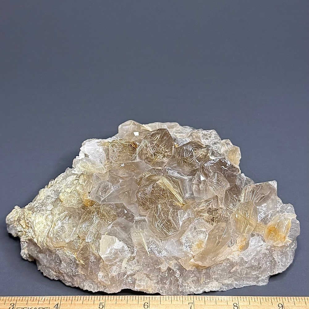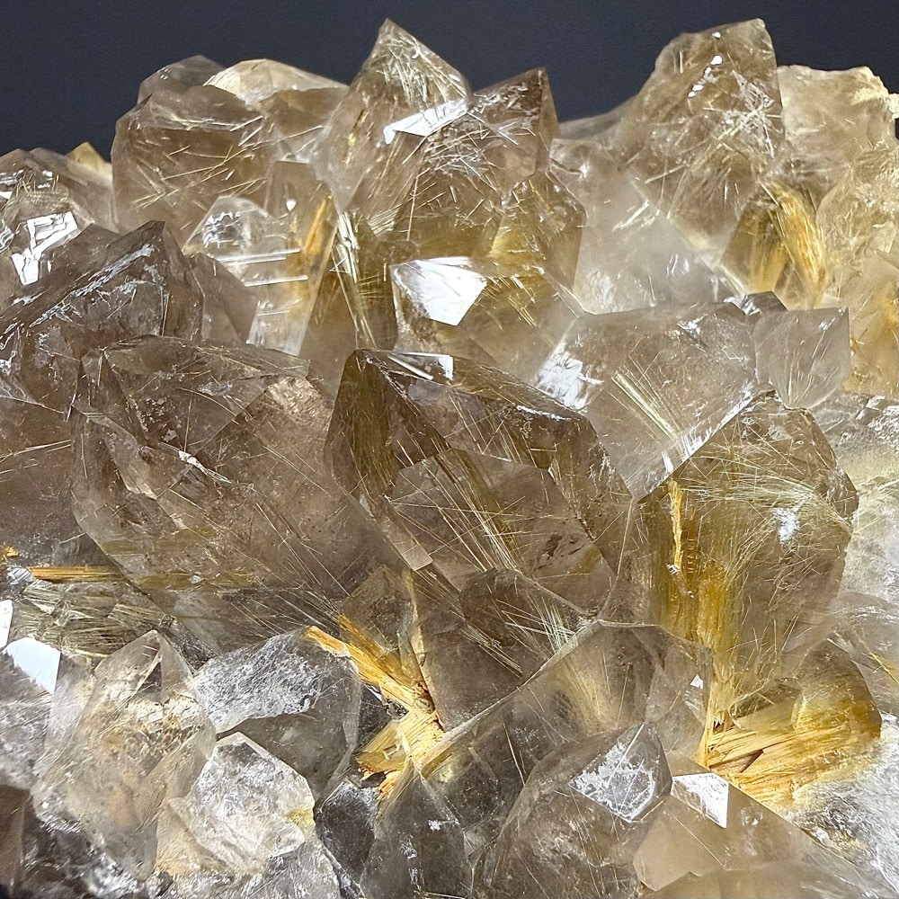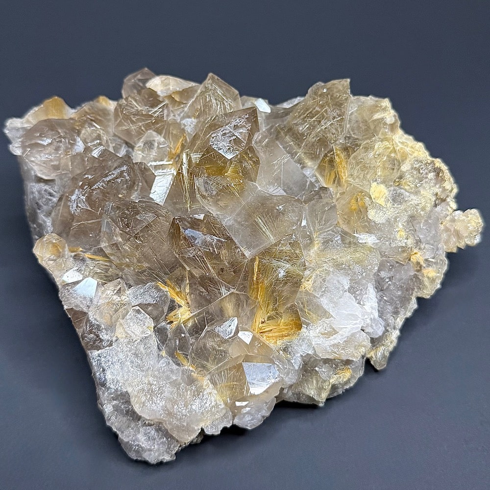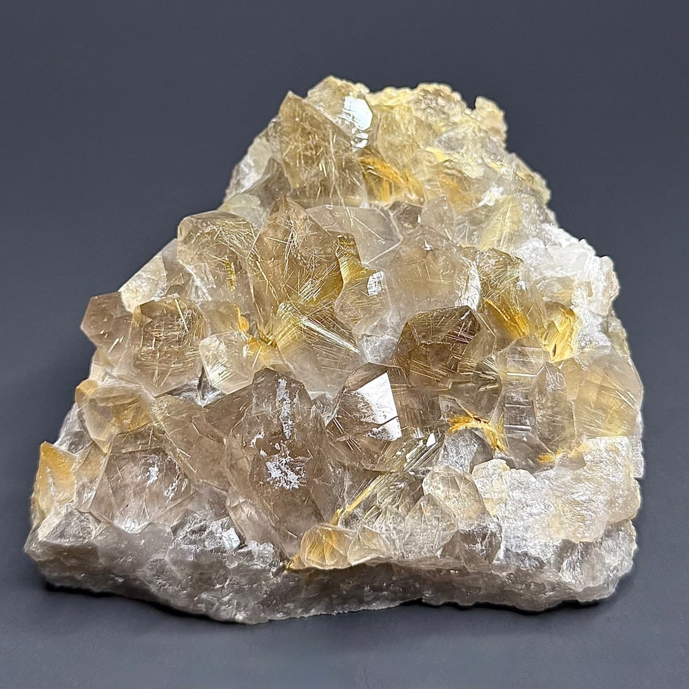 Rutile is a mineral composed primarily of Titanium Dioxide. Rutile has among the highest refractive indices of any known mineral and also exhibits high dispersion. Rutile is known to contain up to 10% Iron as well as significant amounts of Niobium and Tantalum. Rutile creates small needles within crystals that can be seen when held up to light.