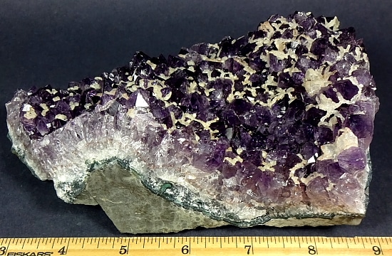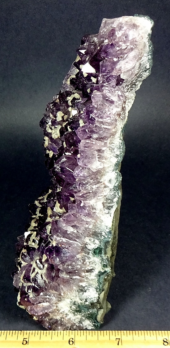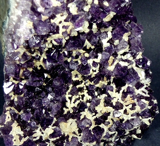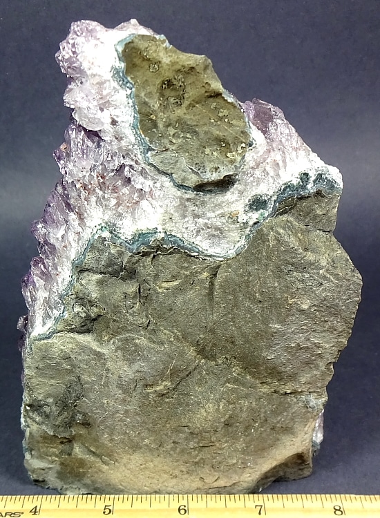 Amethyst is a purple variety of Quartz often used as an ornament. It occurs in color from a light, slightly pinkish violet to a deep grape purple. Upon exposure to heat, Amethyst generally becomes yellow, which some refer to as Citrine or “burnt” Amethyst. It is widely distributed as a mineral, but fine, clear specimens that are suitable for cutting as ornamental stones.
