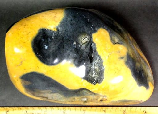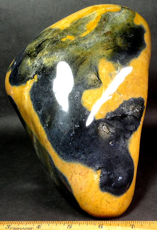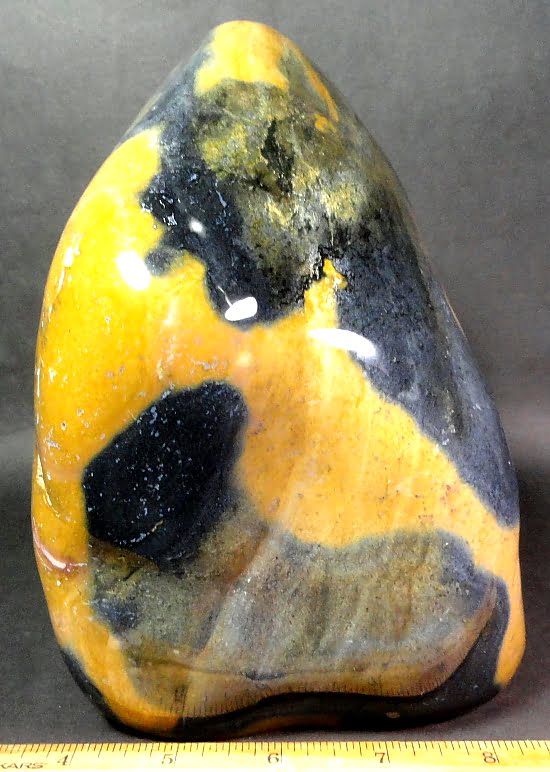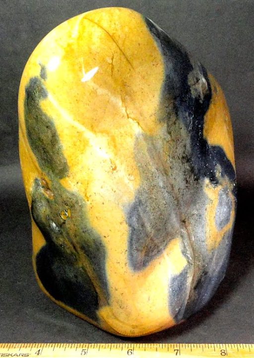 This is a very cool new item, a colorful Spotted Poly Chrome Free Form from Madagascar. It has great colors of Blue and Yellow with other highlights in a fabulous design. This specimen measures 5 3/4″ x 4 3/4″ x 7 1/8″ tall, weighs over 8 pounds and has a nice polish. A one-of-a-kind beauty for any collection!
