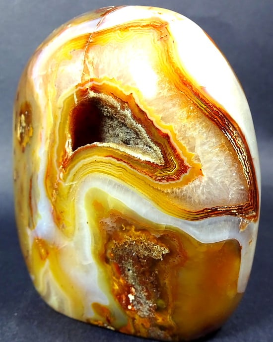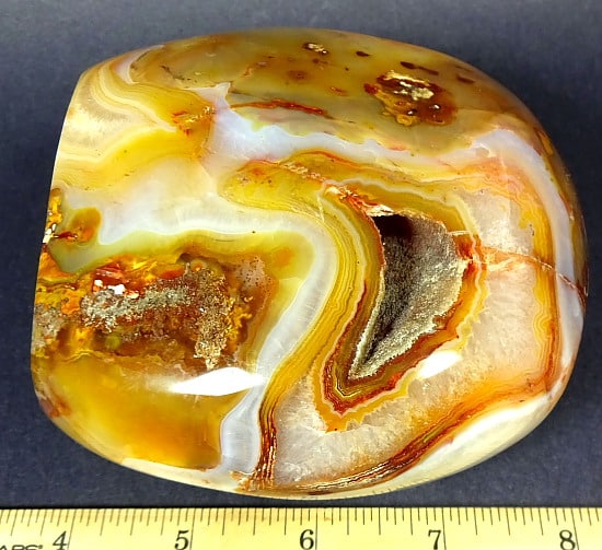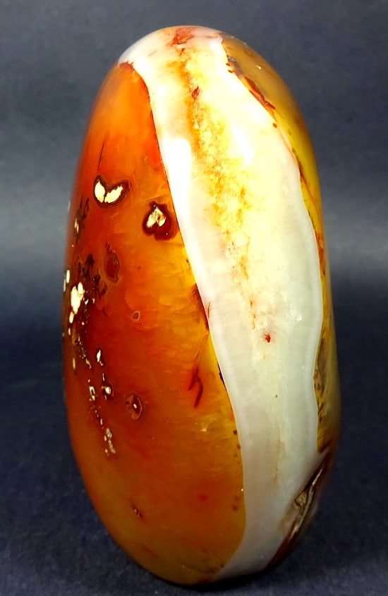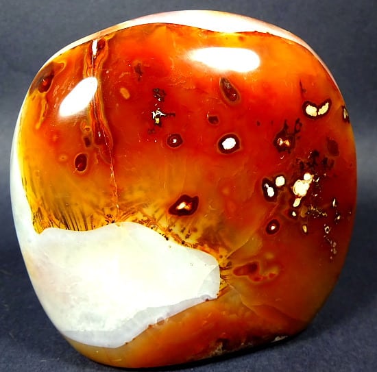Carnelian is a red or reddish-brown variant of Chalcedony but also may come in the colors of orange and pink. It is quite common and usually found in translucent pebble form. It is found in several areas of Europe, Iceland and Madagascar.