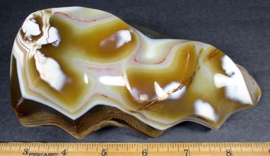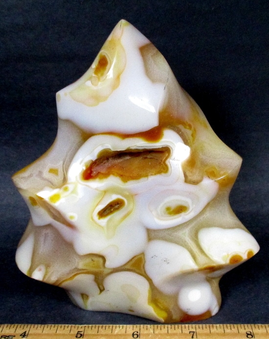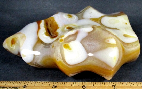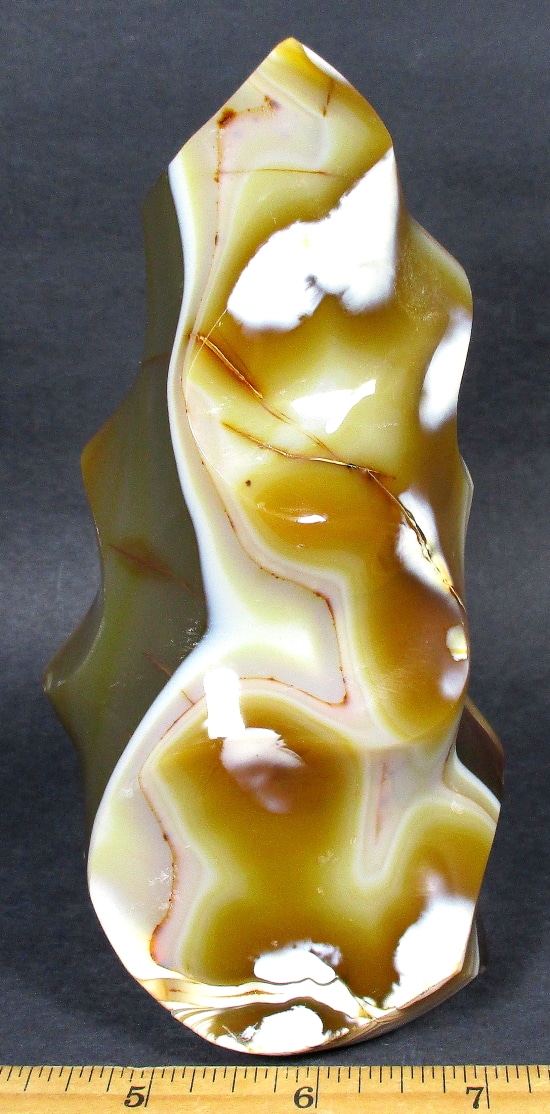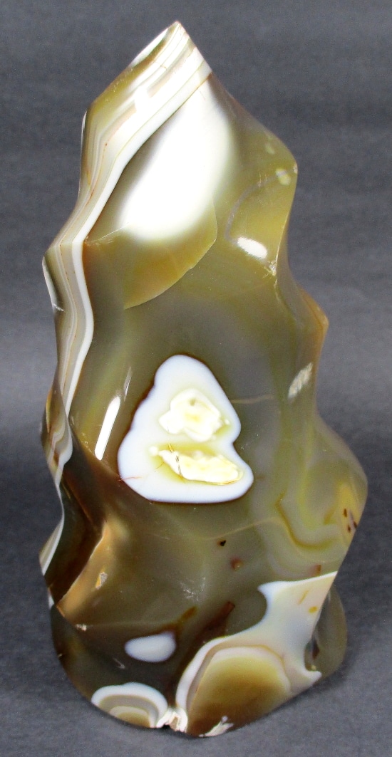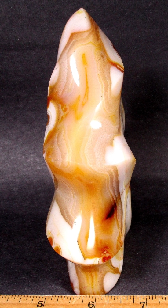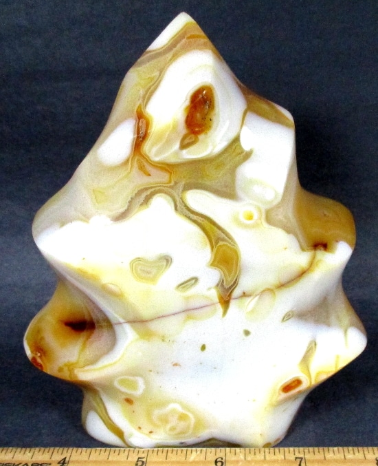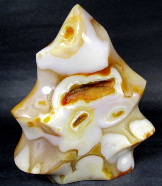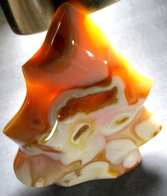 Carnelian is a red or reddish-brown variant of Chalcedony but also may come in the colors of orange and pink. It is quite common and usually found in translucent pebble form. It is found in several areas of Europe, Iceland and Madagascar.