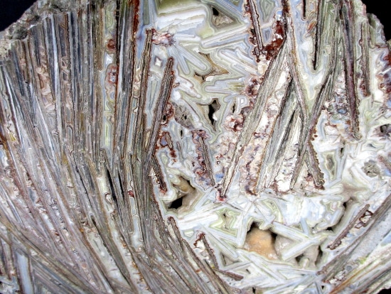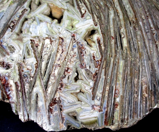 Here’s something new, a phenomenal nicely polished Mexican Stick Agate. This wonderful piece measures 11″ x 8 1/4″ x 3″, weighs nearly 9 1/4 pounds and has a nice polish on the front face leaving the rest in its natural state. It’s a relatively new material we acquired from Mexico and is yet another great creation from our Lapidary Department. Truly a one-of-a-kind item so grab this beauty quick!