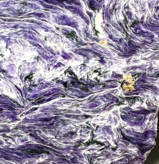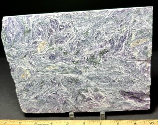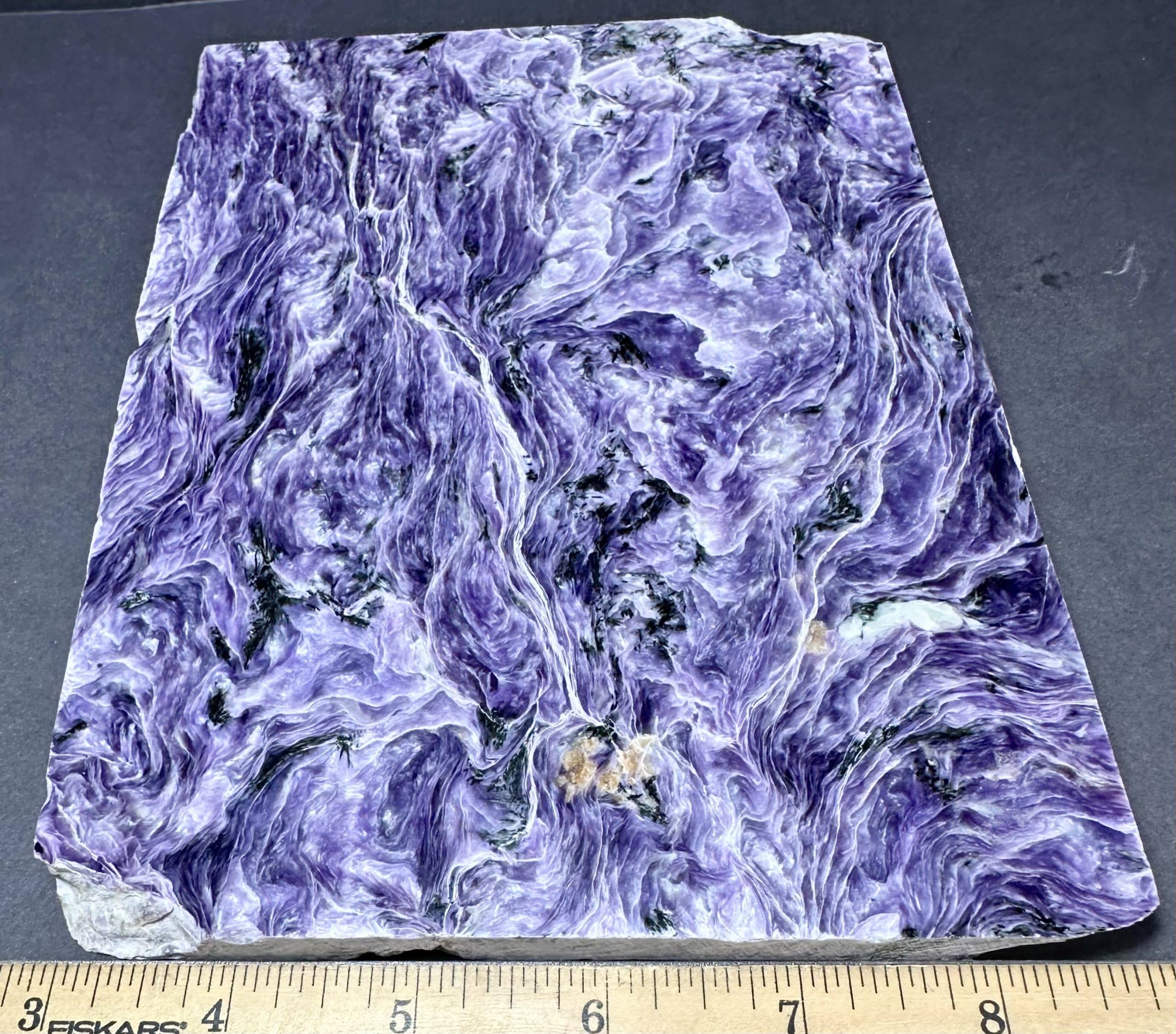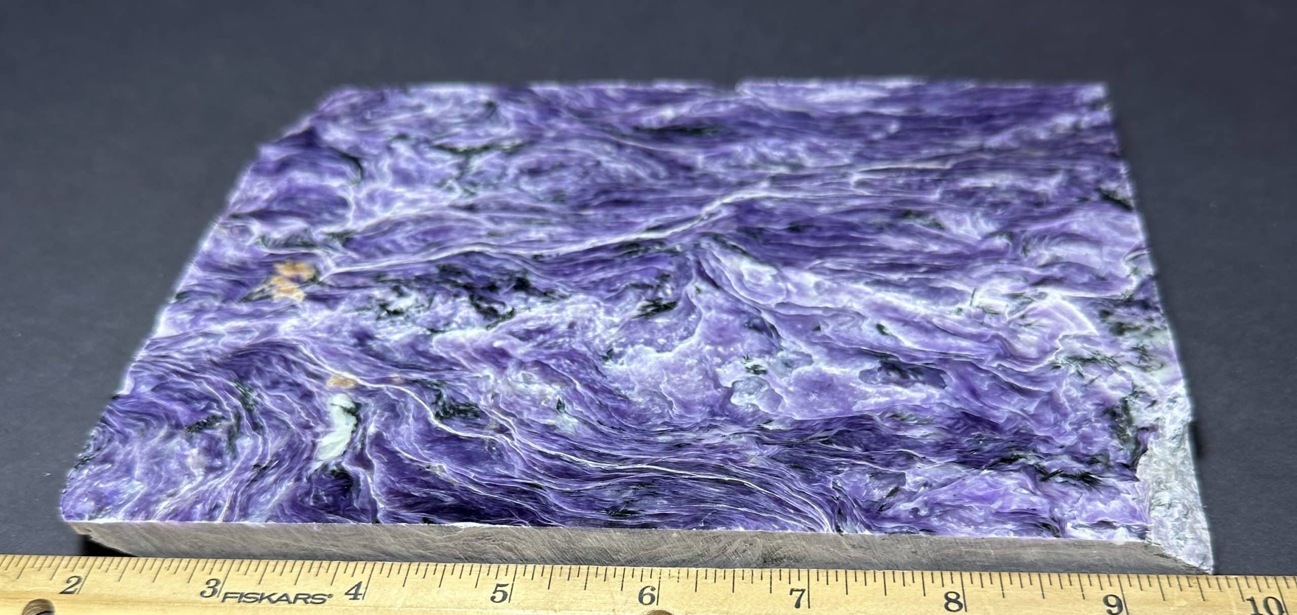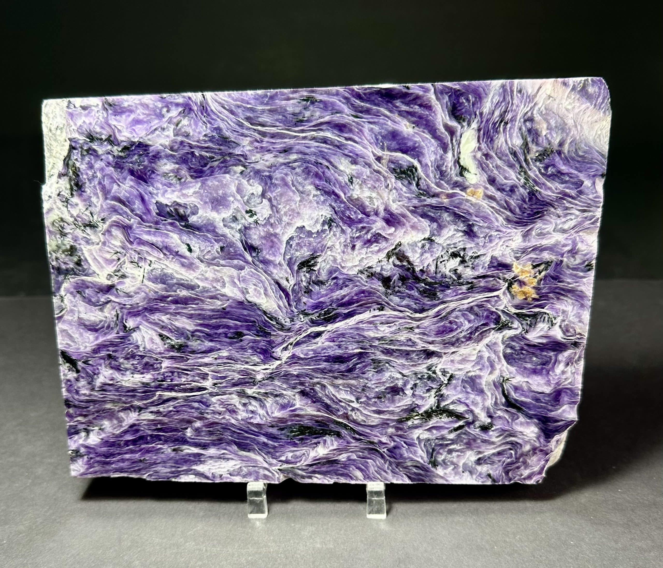 PR1119: Charoite Plaque . – Locality: Russia  Selection: Polish and rough specimen.