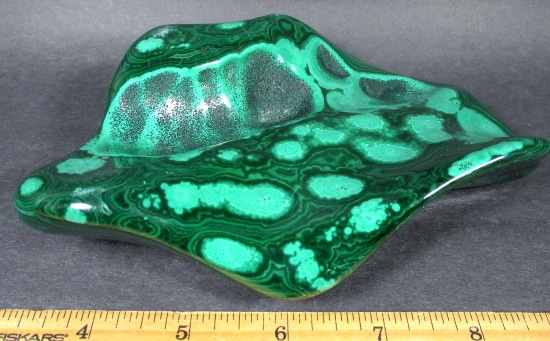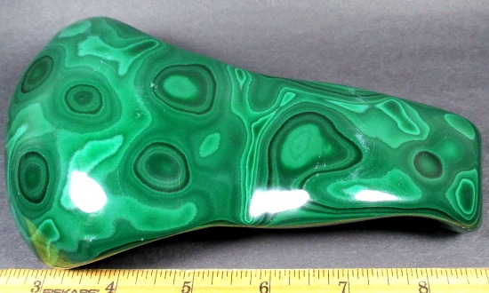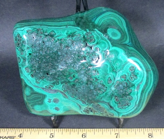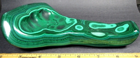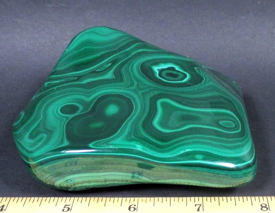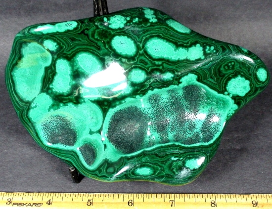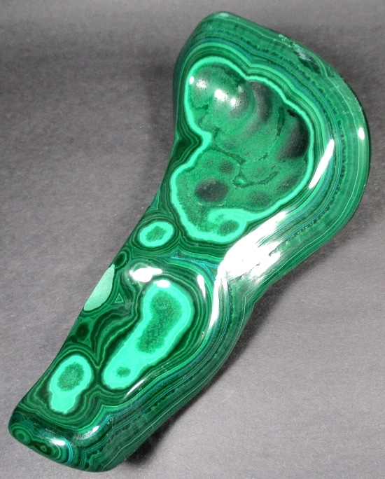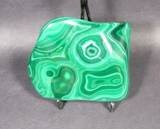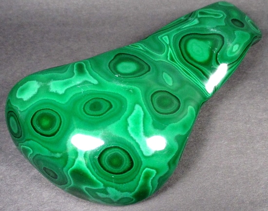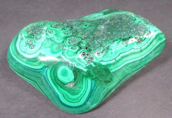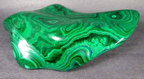 Malachite is a Copper Carbonate mineral that often forms botryoidal, fibrous or stalagmitic masses. It is often the result of the weathering of Copper Ores and is commonly found with Azurite, Goethite and Calcite. It is typically associated with Copper deposits including Limestone which is the source of the Carbonate. Malachite is found in many regions worldwide and is usually shaded green in color.