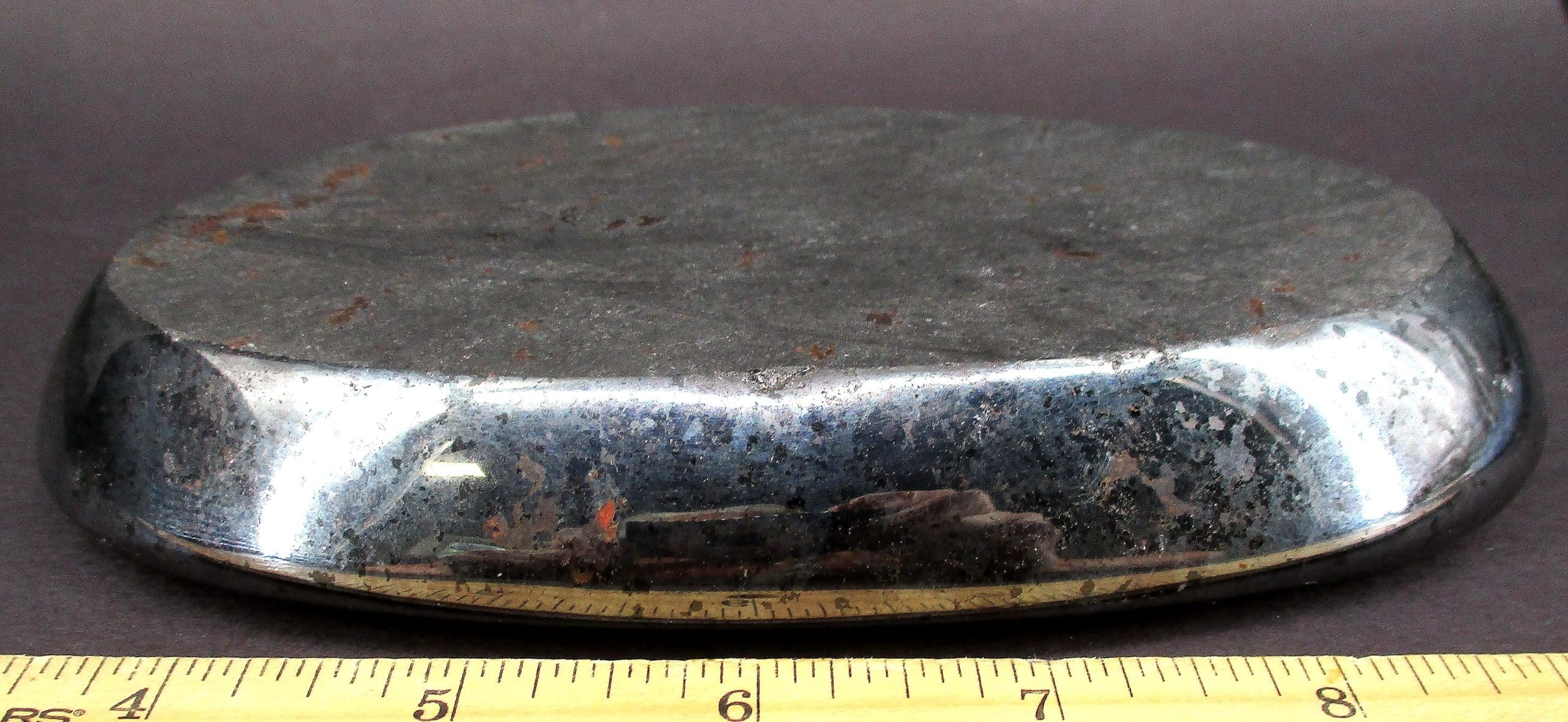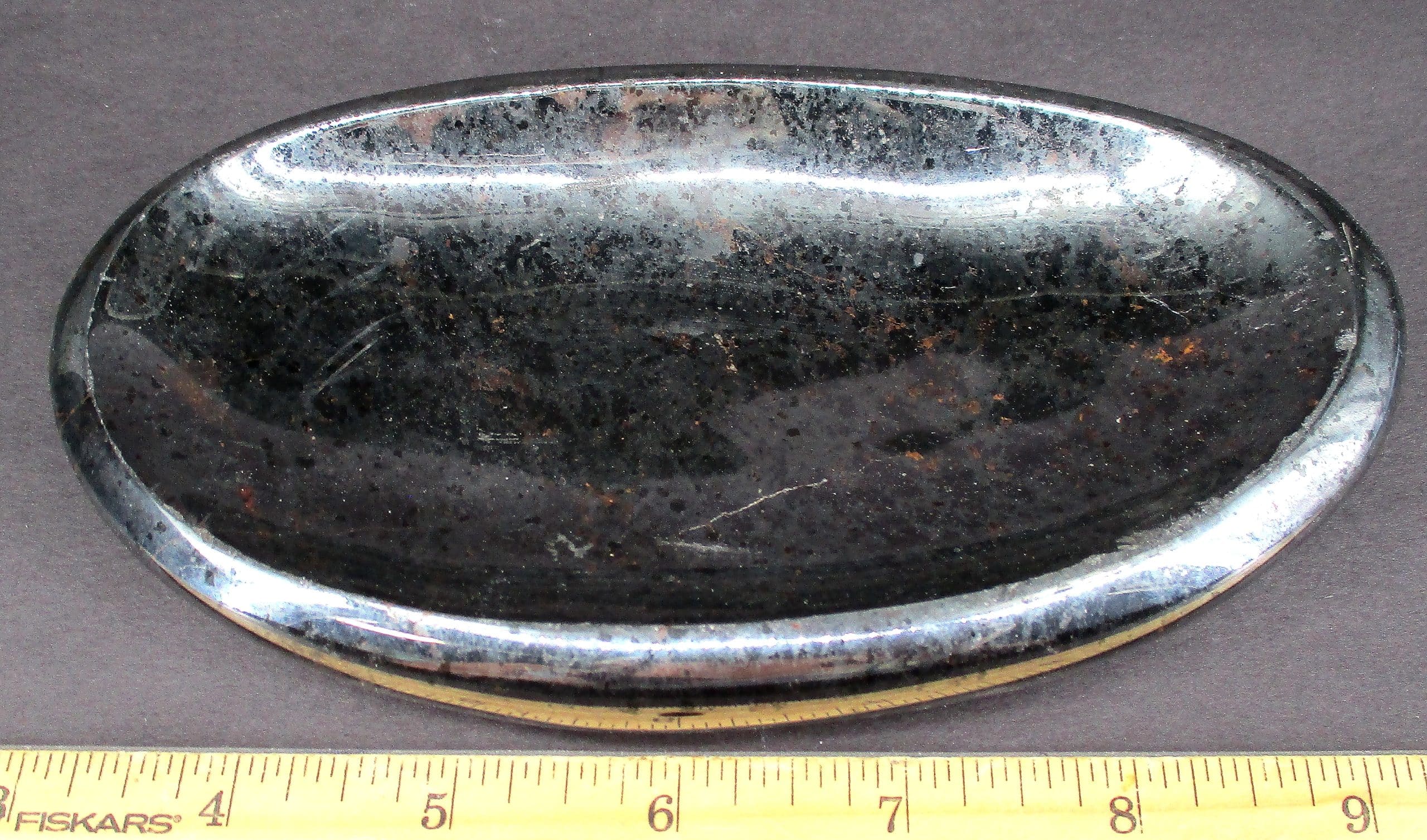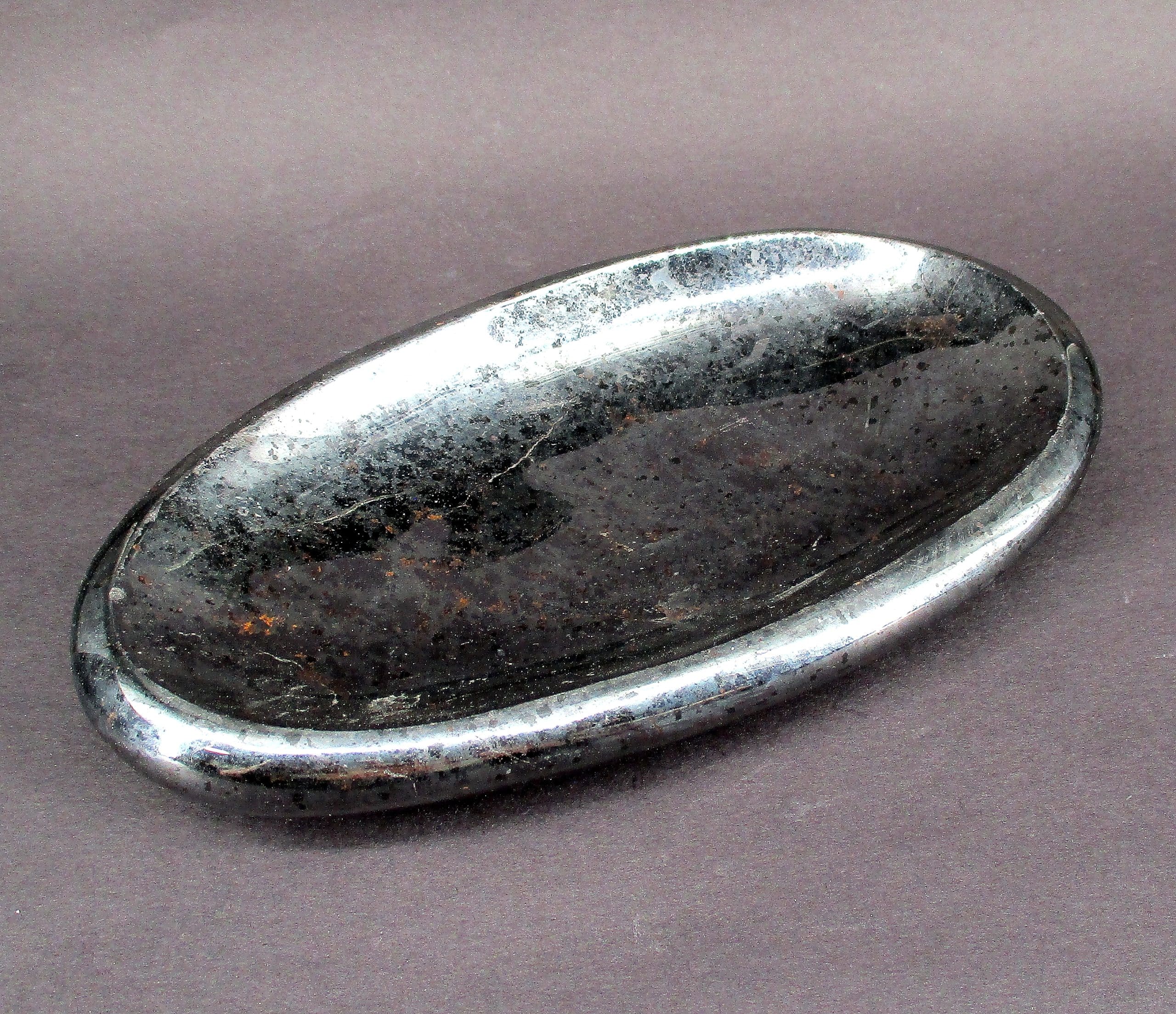 Hematite is a mineral form of Iron oxide. It is a very common material that has a black to steel to silver-grey color and may also appear reddish brown. Hematite is a heavy metal and when it is polished it is consider to many to be of gemstone quality. It is very popular in jewelry and Native American art.