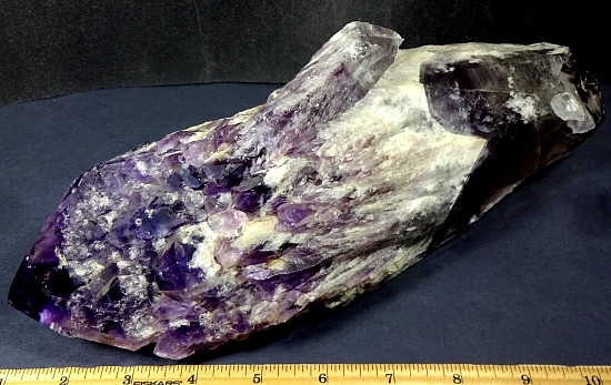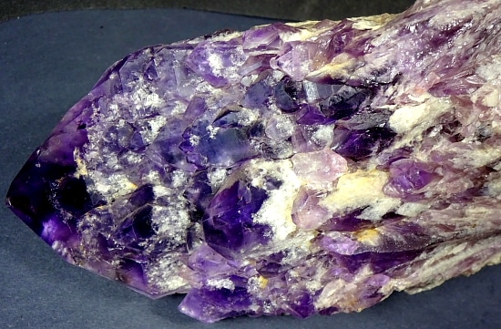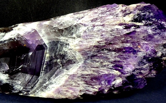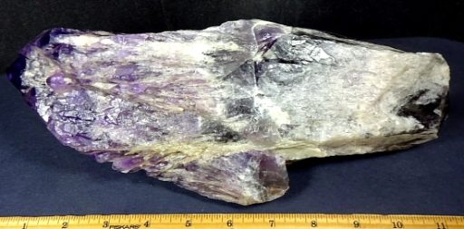 Amethyst is a purple variety of Quartz often used as an ornament. It occurs in color from a light, slightly pinkish violet to a deep grape purple. Upon exposure to heat, Amethyst generally becomes yellow, which some refer to as Citrine or “burnt” Amethyst. It is widely distributed as a mineral, but fine, clear specimens that are suitable for cutting as ornamental stones.