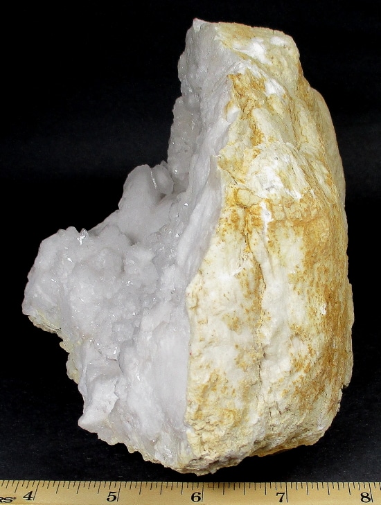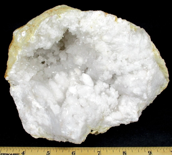 This is an exceptional Moroccan Geode.  It has been cut open to show the deep cavern with the the beautiful sugary White and sparkly Quartz Crystals.  The pretty Geode measures 6 3/4 x 4 1/2″ x 4 3/4″ and has a natural finish.  Very nice indeed!
