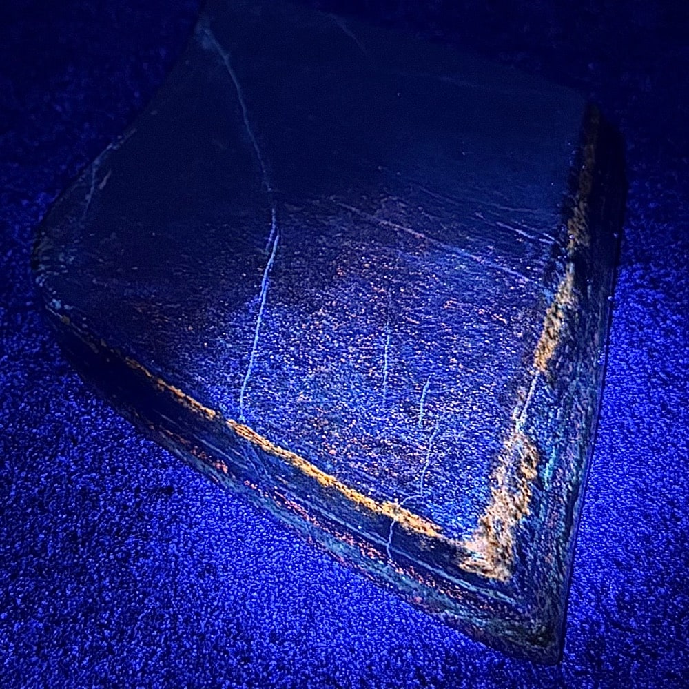 Appearance: High quality polish that brings out the great sparkly Royal blue color with speckles of Pyrite. UV fluorescent (shot with uvBeast 365nm(nanometer) Black Light UV flashlight).