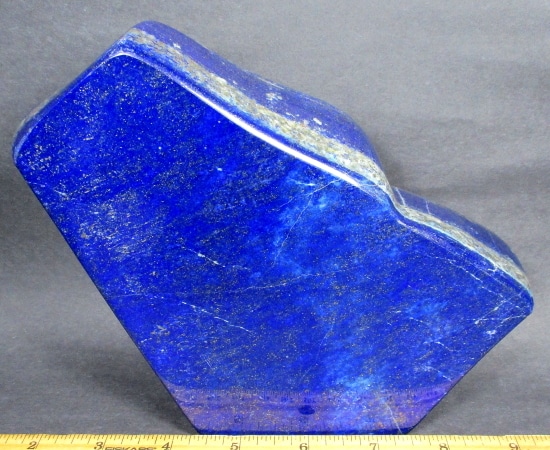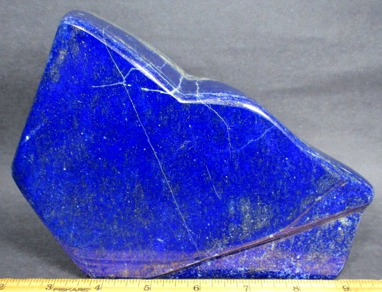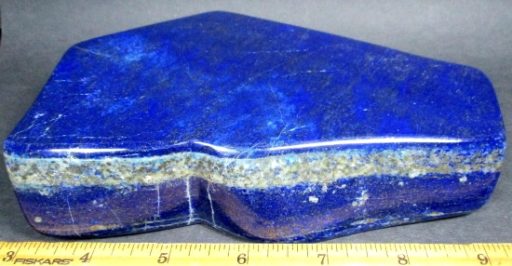 Lapis is a rock and not a mineral because it is made up from various other minerals. To be a mineral it would have one constituent only, and Lapis has several including Lazurite, Sodium, Aluminum, Silicon, Oxygen, Sulfur and Chlorine. Most Lapis contains Calcite, Sodalite and Pyrite. The best color is an intense blue that is lightly dusted with small flecks of Pyrite. Lapis takes an excellent polish and has been made into jewelry, carvings, boxes, mosaics and ornamental objects.