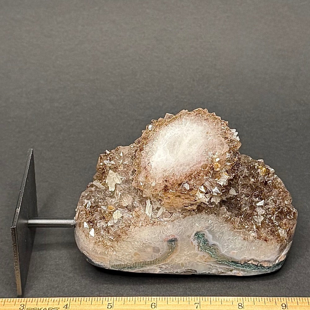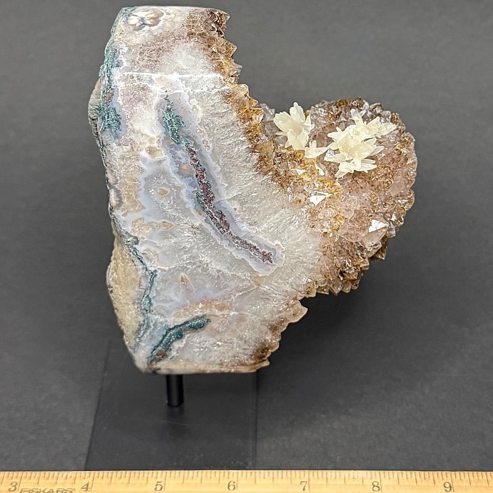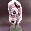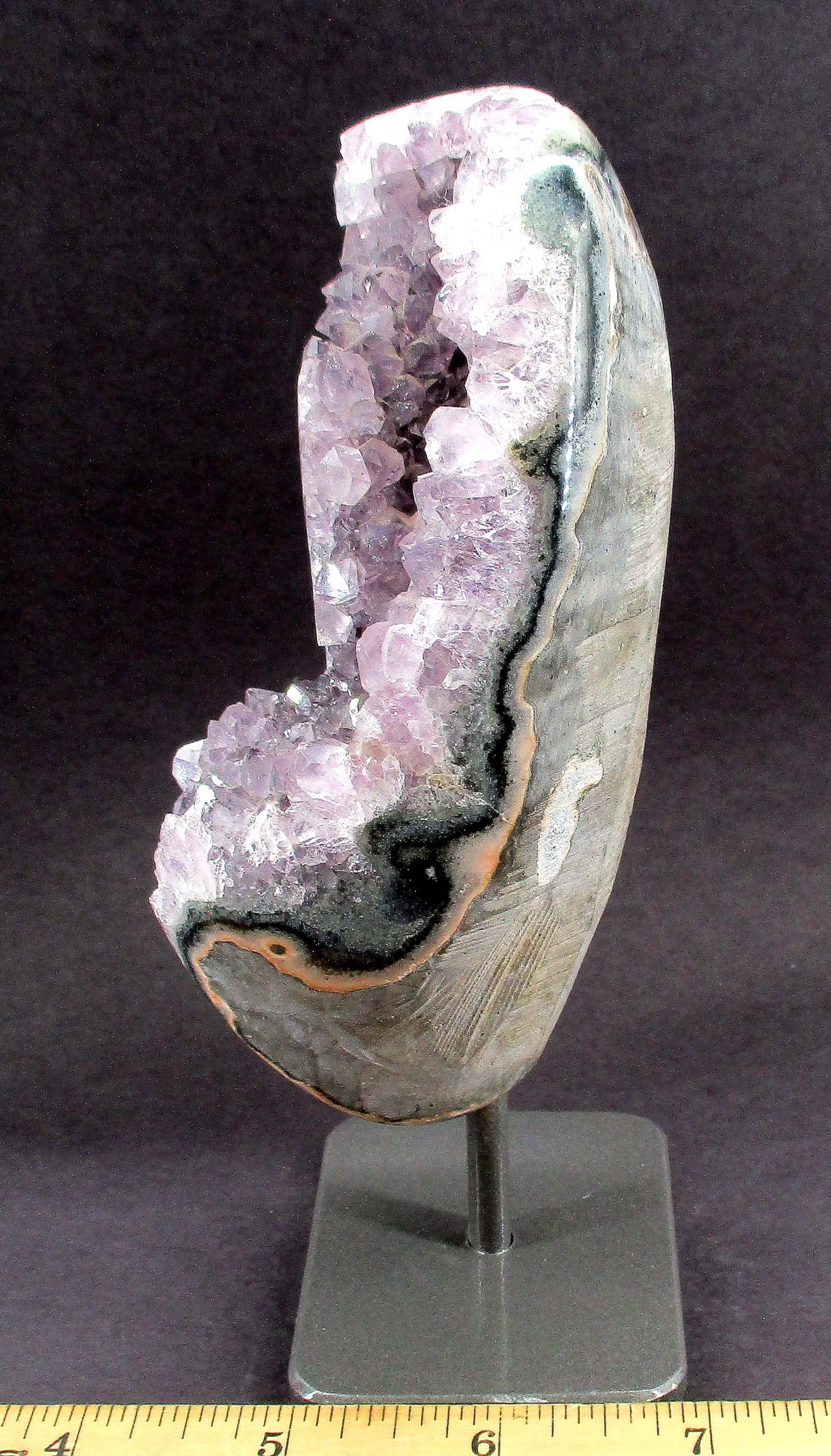 Amethyst is a purple variety of Quartz often used as an ornament. It occurs in color from a light, slightly pinkish violet to a deep grape purple. Upon exposure to heat, Amethyst generally becomes yellow, which some refer to as Citrine or “burnt” Amethyst. It is widely distributed as a mineral, but fine, clear specimens that are suitable for cutting as ornamental stones.