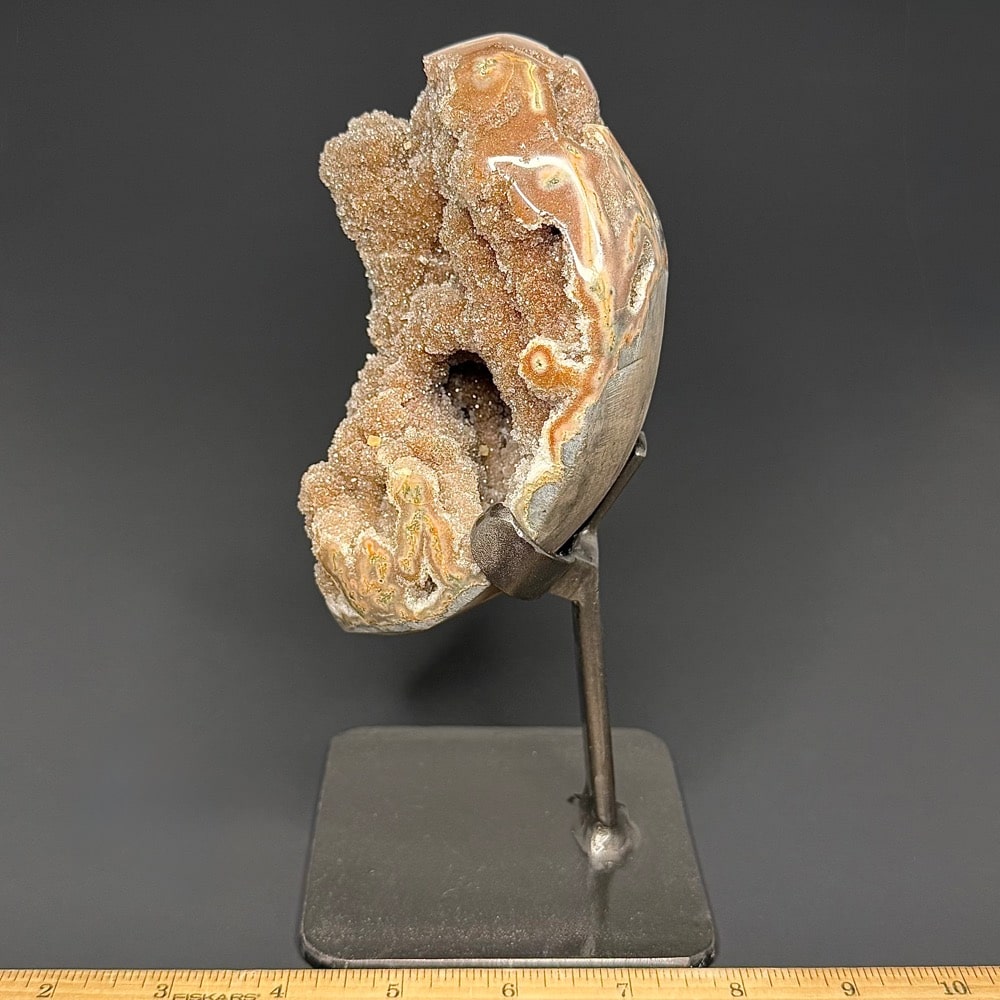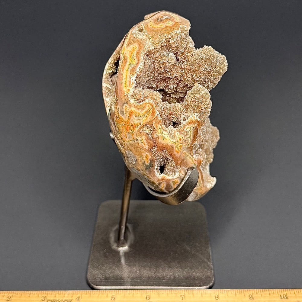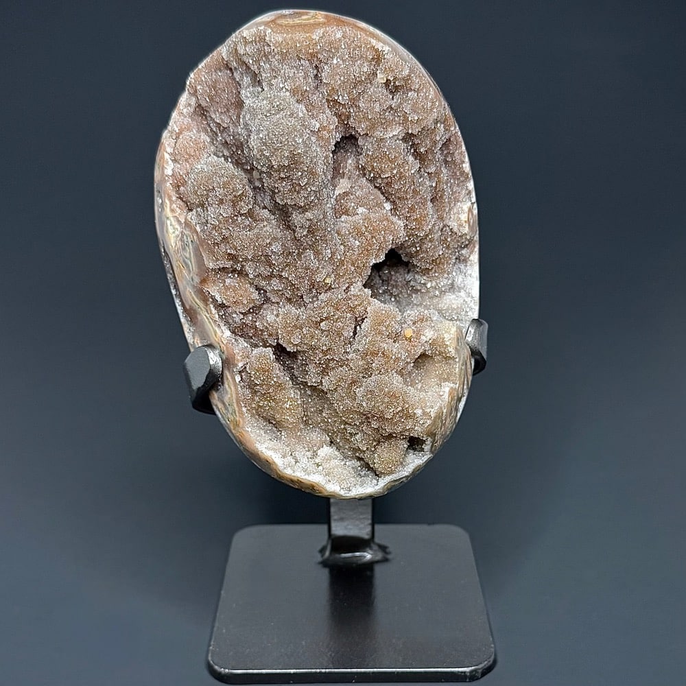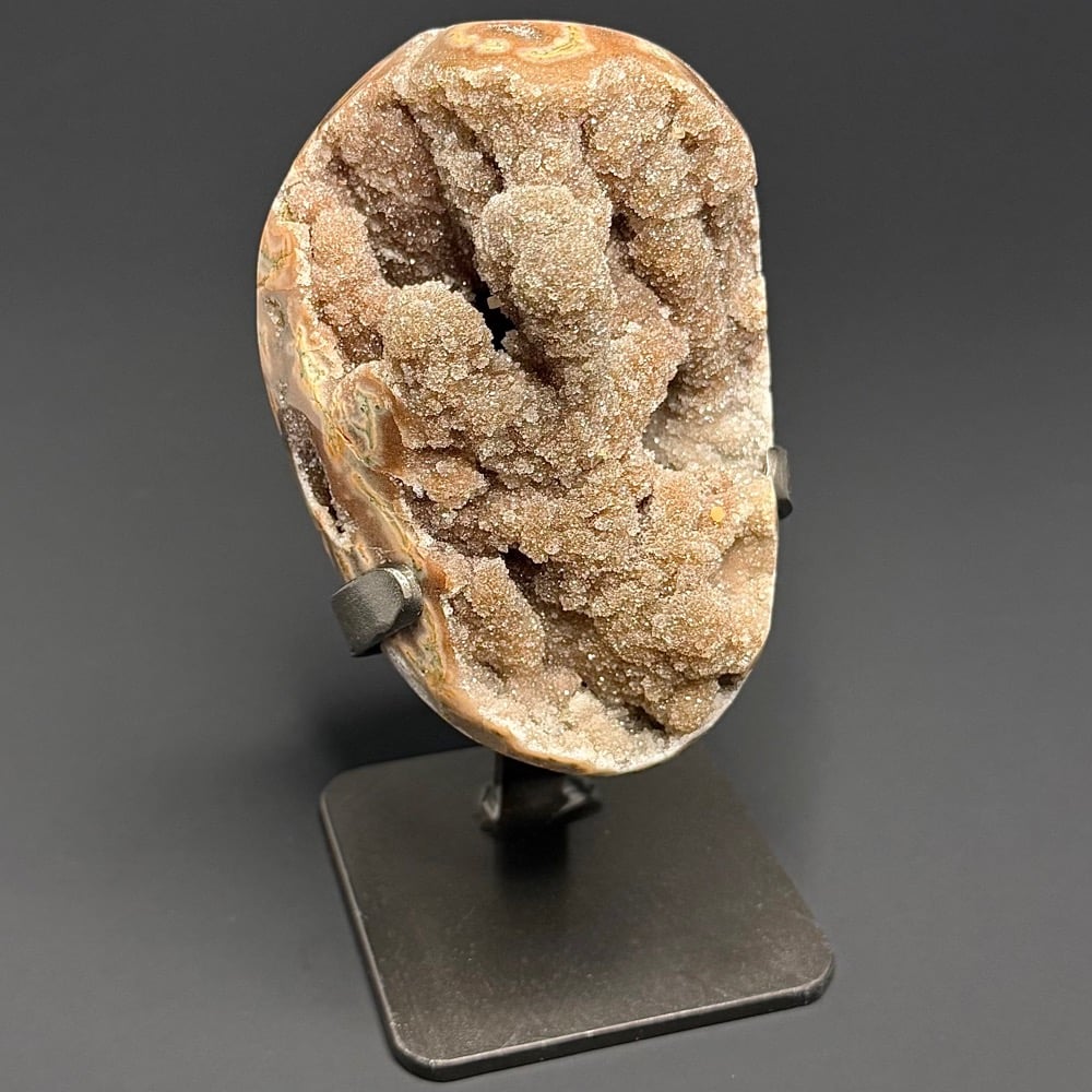 Goethite is an Iron bearing Oxide mineral found in soil and other low temperature environments. Historically, Goethite has been used as a paint pigment found on cave paintings in France. Its main modern use is that of an Iron Ore content or objects using Iron Ore. Goethite is found worldwide usually in the form of concretions, stalactitic formations, oolites, reniform or botryoidal accumulations.