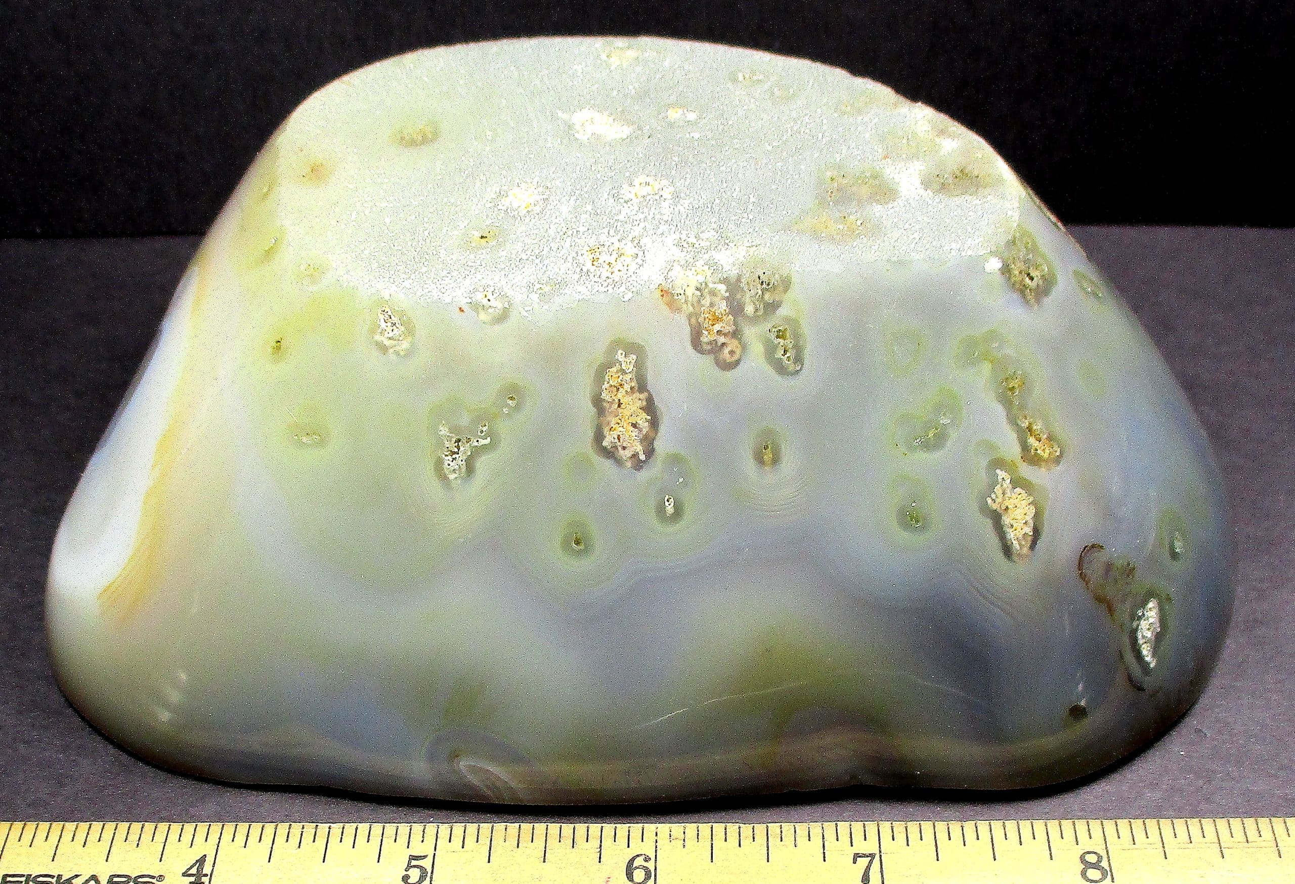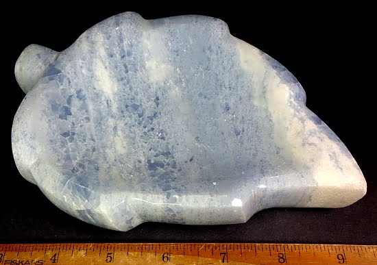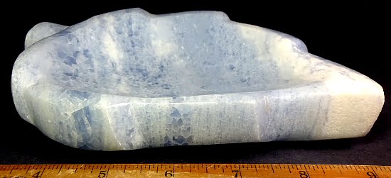 Here’s a lovely decorative dish carved from Agate from Madagascar. This dish has beautiful colors, amazing banding and a good polish.  It measures 6 5/8″ long x 5″ x 2 1/8″ tall.  A wonderful work of art!