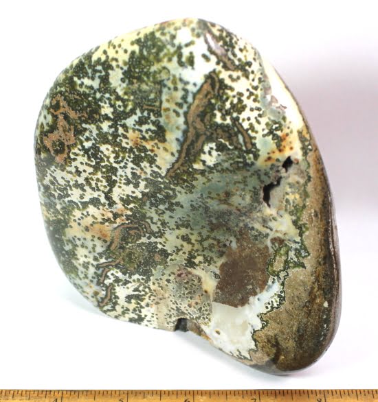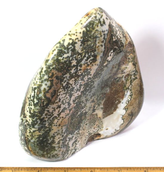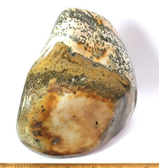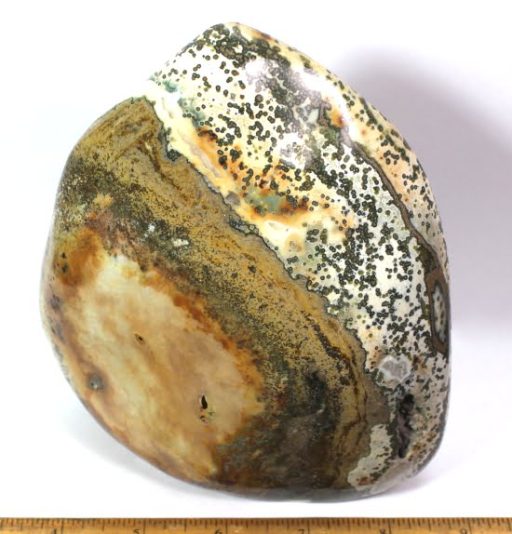 Jasper, or spotted stone, is an opaque, impure variety of Quartz that is usually red, yellow or brown in color. Some Jaspers simultaneously exhibit several variants such as banding, flow patterns, dendrites or color variations. This results in what appears to be scenes or images in a cut section of the Jasper.