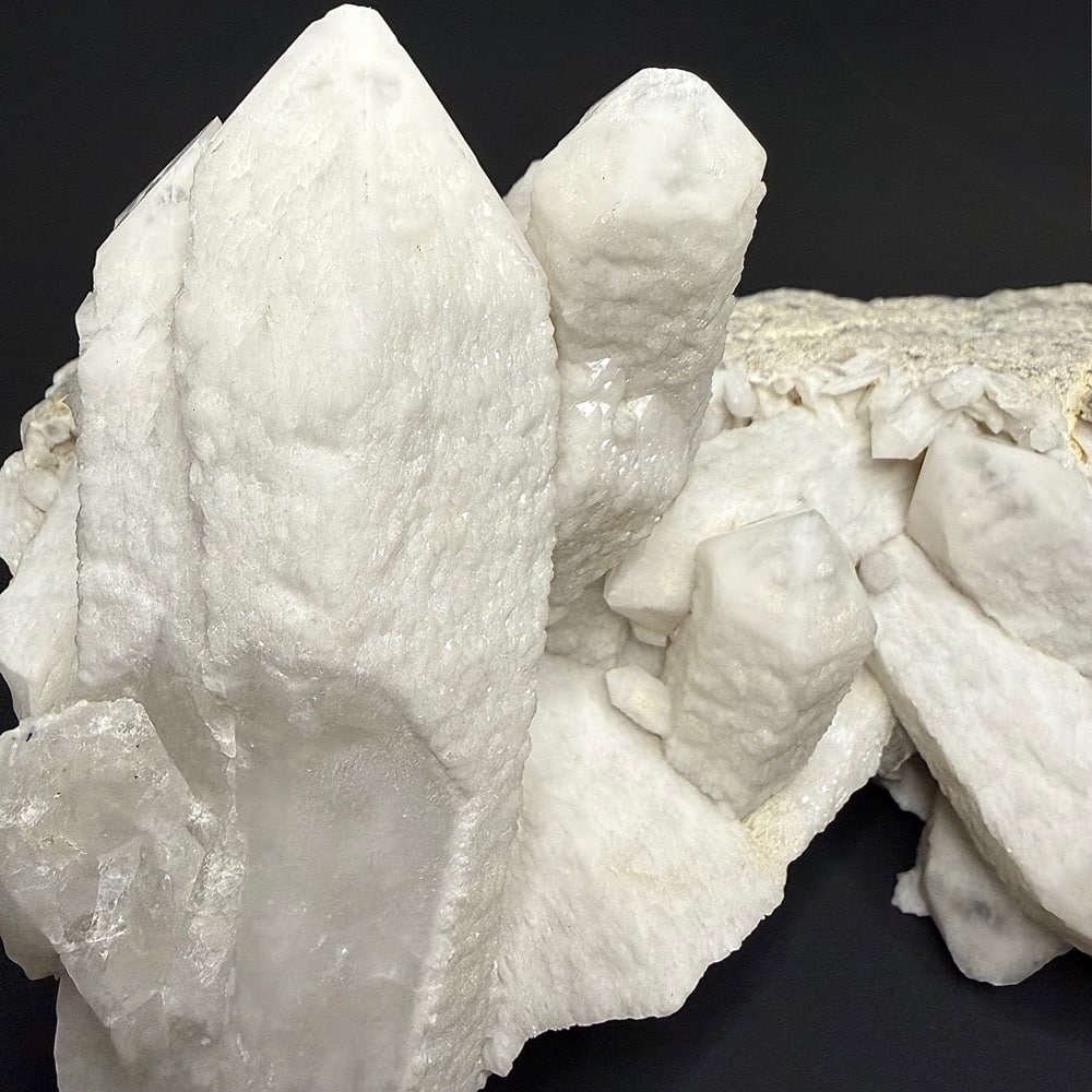 Appearance: A beautiful cluster of crystals pointing in various directions with lots of “sparkle”.