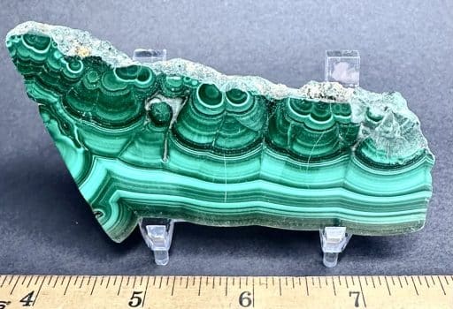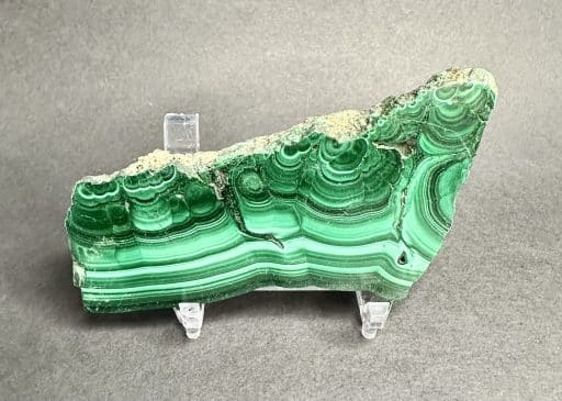Malachite is a Copper Carbonate mineral that often forms botryoidal, fibrous or stalagmitic masses. It is often the result of the weathering of Copper Ores and is commonly found with Azurite, Goethite and Calcite. It is typically associated with Copper deposits including Limestone which is the source of the Carbonate. Malachite is found in many regions worldwide and is usually shaded green in color.