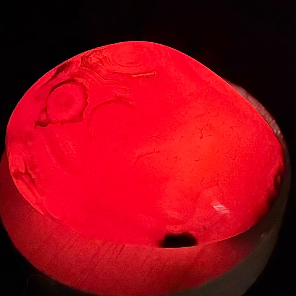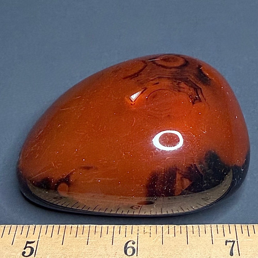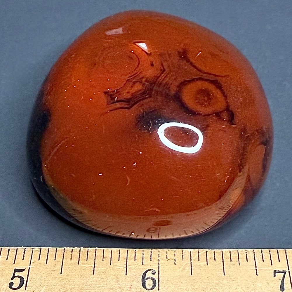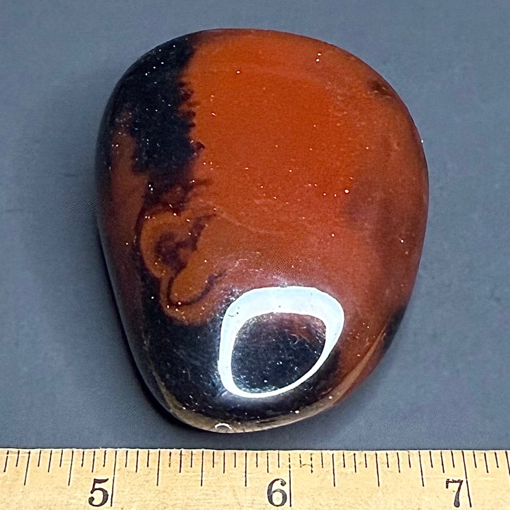 Sardonyx is a form of Chalcedony. Chalcedony is a cryptocrystalline form of silica, composed of very fine intergrowths of the minerals quartz and moganite. Chalcedony has a waxy luster and may be semitransparent or translucent. It can assume a wide range of colors, but those most commonly seen are white to gray, grayish-blue or a shade of brown ranging from pale to nearly black.