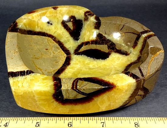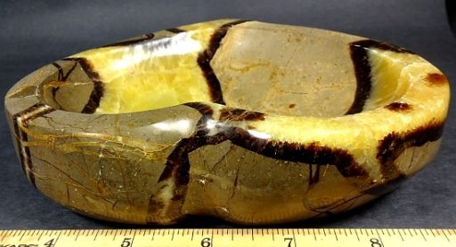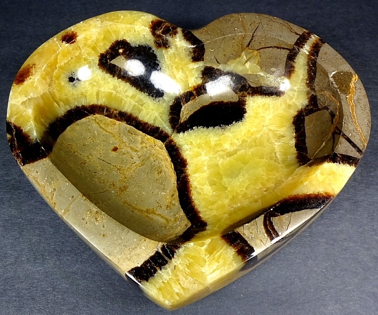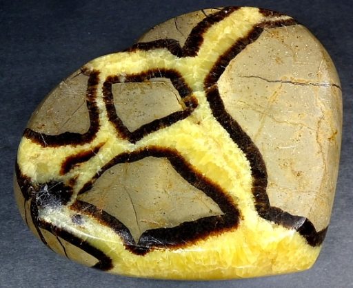 Septarian, also know as a type of Concretion, is a volume of sedimentary rock in which a mineral cement fills the porosity. Concretions are often ovoid or spherical in shape. They form within layers of sedimentary strata that has already been deposited. It is composed of a Carbonate mineral such as Calcite, a Silica such as Chert, Flint or Jasper or an Iron Oxide such as Goethite or Hematite. It is commonly found in Shale, Siltstones and Sandstones.