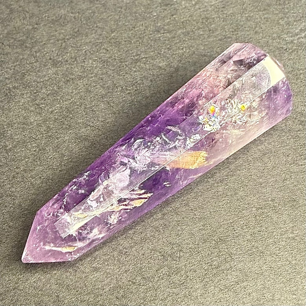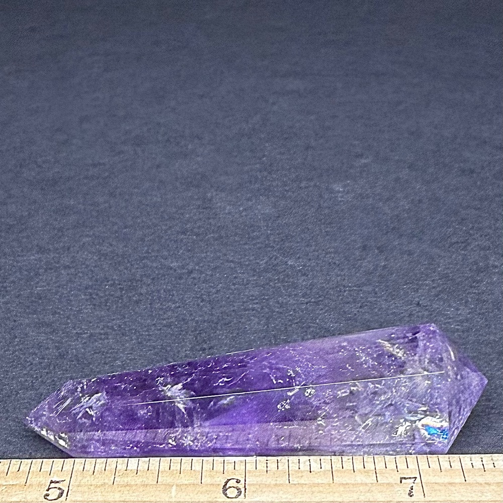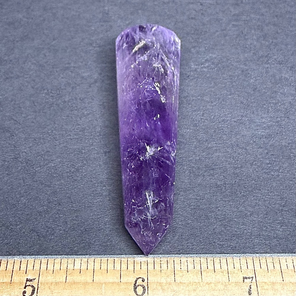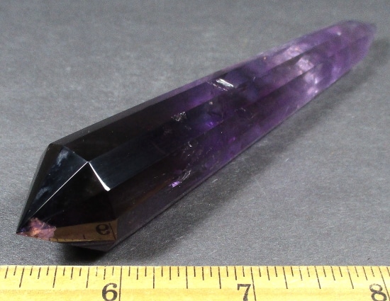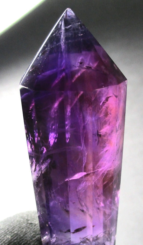 Amethyst is a purple variety of Quartz often used as an ornament. It occurs in color from a light, slightly pinkish violet to a deep grape purple. Upon exposure to heat, Amethyst generally becomes yellow, which some refer to as Citrine or “burnt” Amethyst. It is widely distributed as a mineral, but fine, clear specimens that are suitable for cutting as ornamental stones are less common.