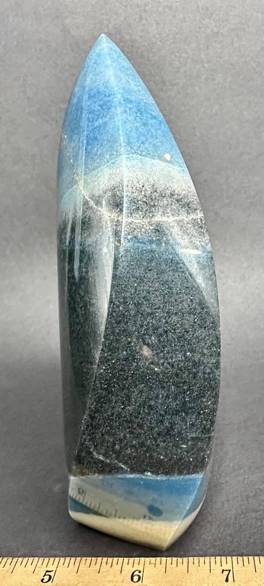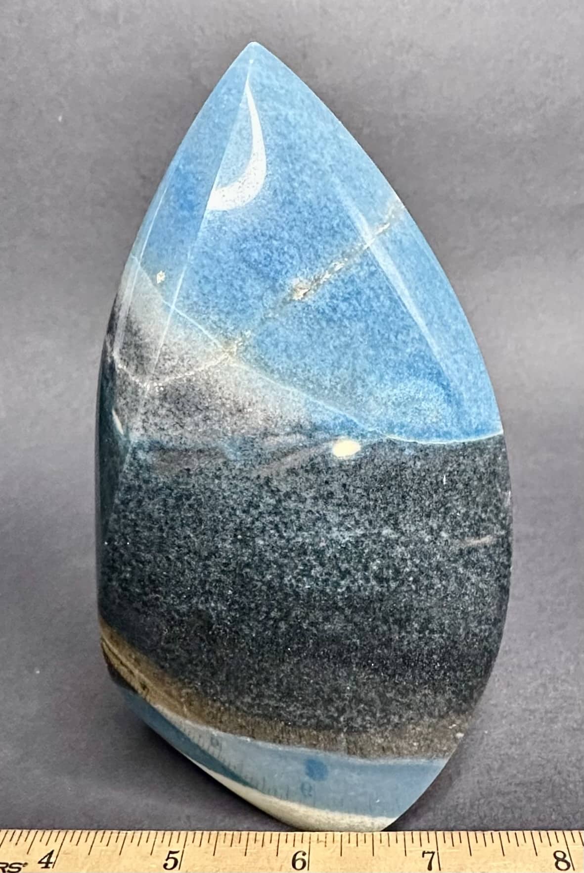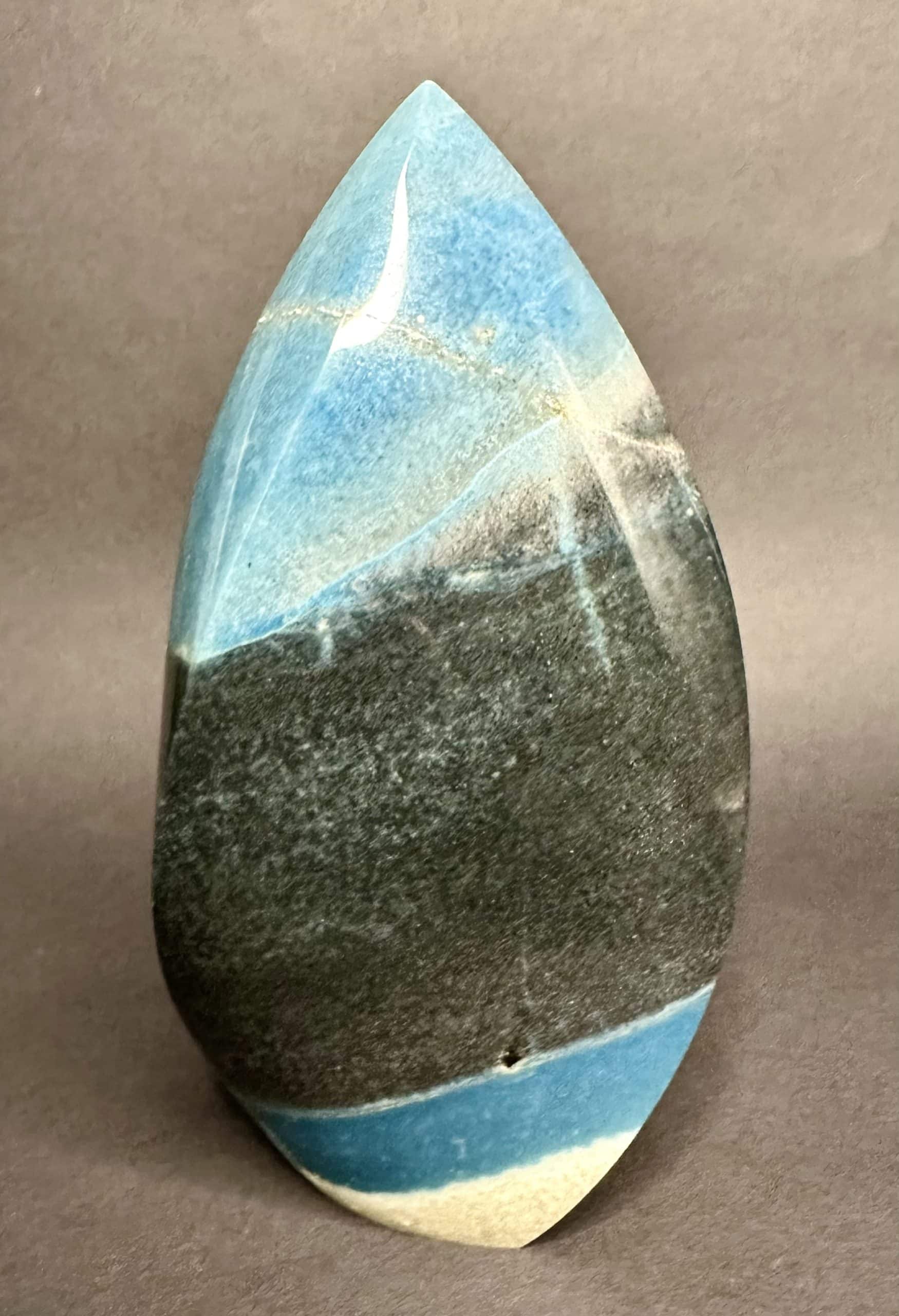 Trolleite is a blue mineral named after Hans Gabriel Trolle-Wachtmeister, a Swedish chemist. It is a rare phosphate mineral that is often found with Quartz, and sometimes combined with Lazurite and Scorzalite, which results in an even bluer crystal. New discoveries of Trolleite are coming out of Brazil recently, in gorgeous shades of blue, grey and black.