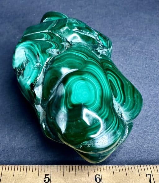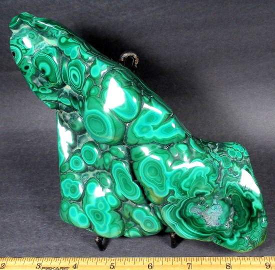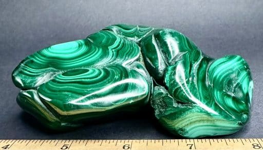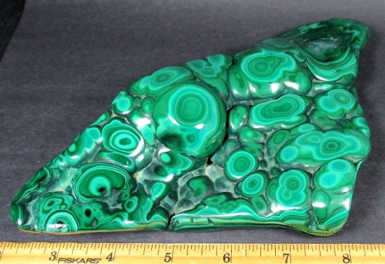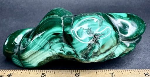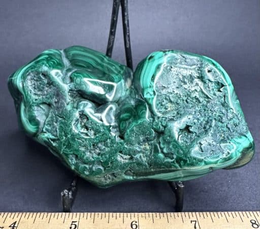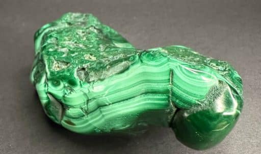 Malachite is a Copper Carbonate mineral that often forms botryoidal, fibrous or stalagmitic masses. It is often the result of the weathering of Copper Ores and is commonly found with Azurite, Goethite and Calcite. It is typically associated with Copper deposits including Limestone which is the source of the Carbonate. Malachite is found in many regions world wide and is usually shaded green in color.