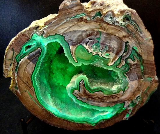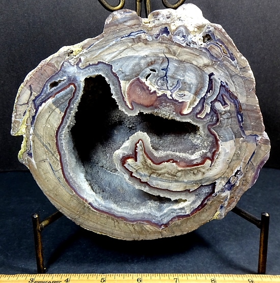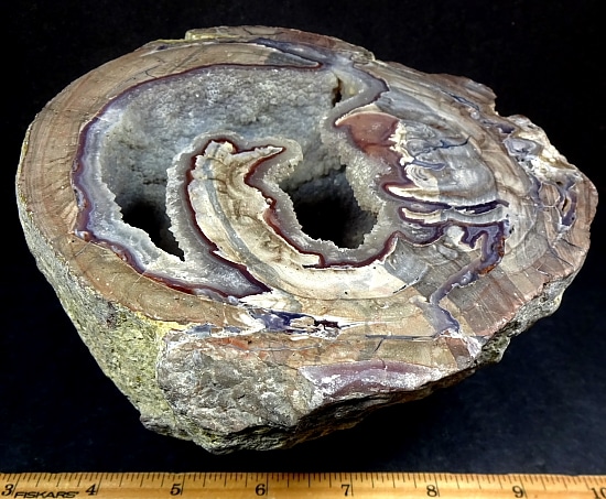Geodes are geological rock formations which occur in sedimentary and certain volcanic rocks. They are essentially rock cavities or vugs with internal Crystal formations or concentric banding. The exterior is generally Limestone while the interior contains Quartz Crystals and/or Chalcedony deposits. If the Geode is completely filled with Crystal, being solid all the way through, it is then called a nodule.