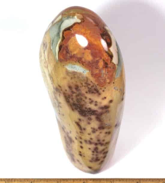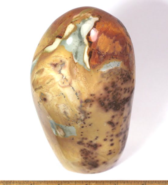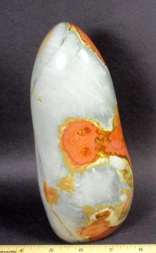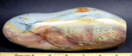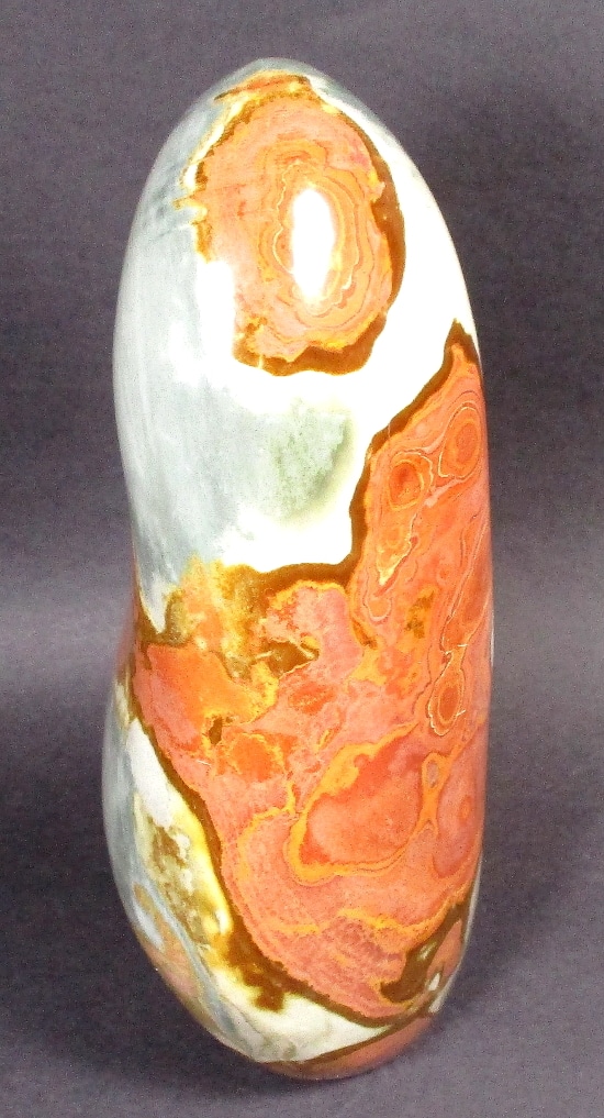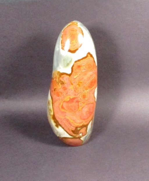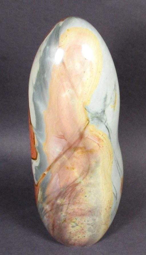 Here is a beautiful and very colorful polished piece of Poly Chrome Jasper.  This interesting specimen has a nice blend of bold and pastel colors all in a mesmerizing design.  This awesome free form measures 3 1/8″ wide x almost 2 5/8″ x 7 3/8″ tall and is highly polished on all sides except for the bottom.  A lovely addition to any collection.