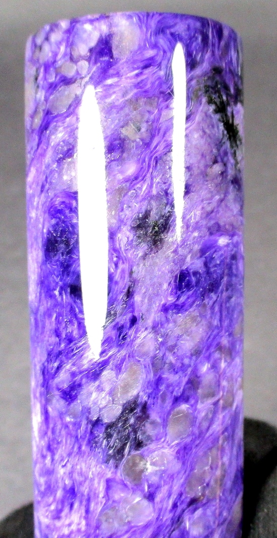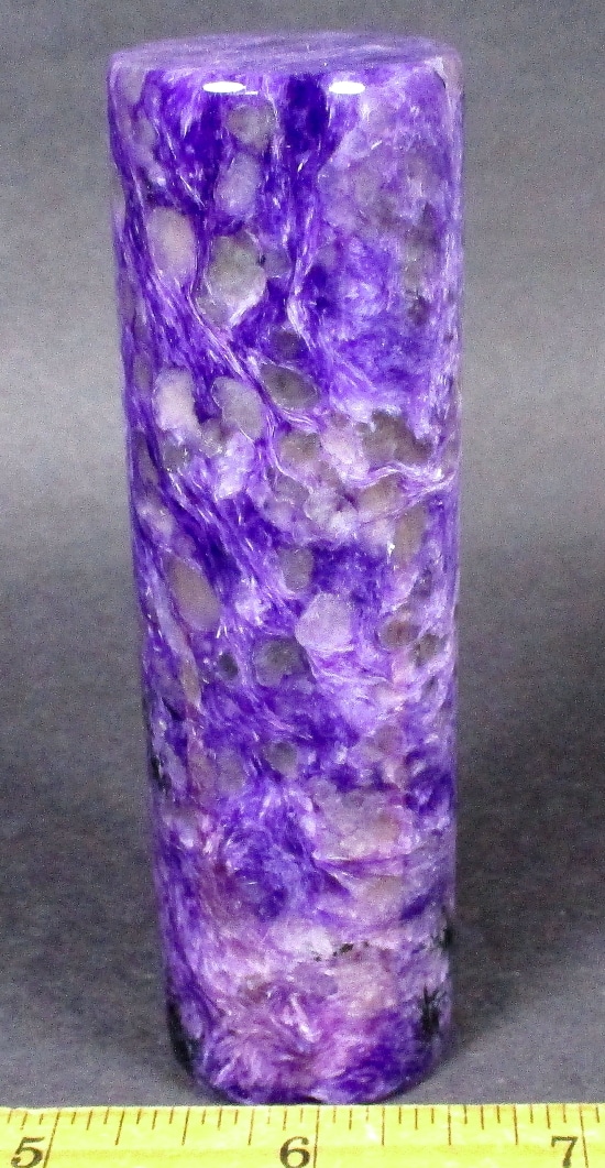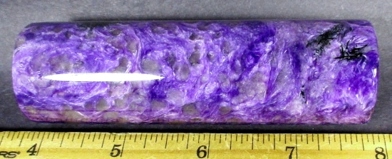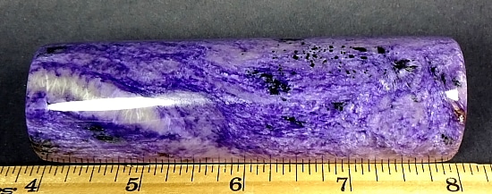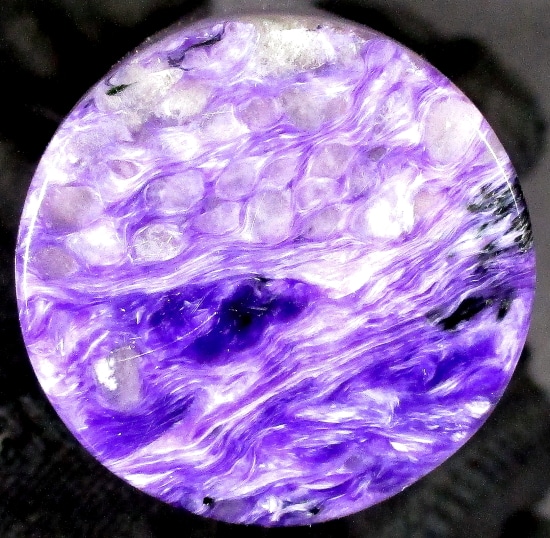 Charoite is newly found mineral, first discovered in the 1940s and described to the world in 1978. It is found only in Siberia, Russia and is a translucent lavender to purple color. Charoite has a swirling, fibrous appearance and is strictly massive in nature. It is used as an ornamental stone and sometimes as a gemstone.