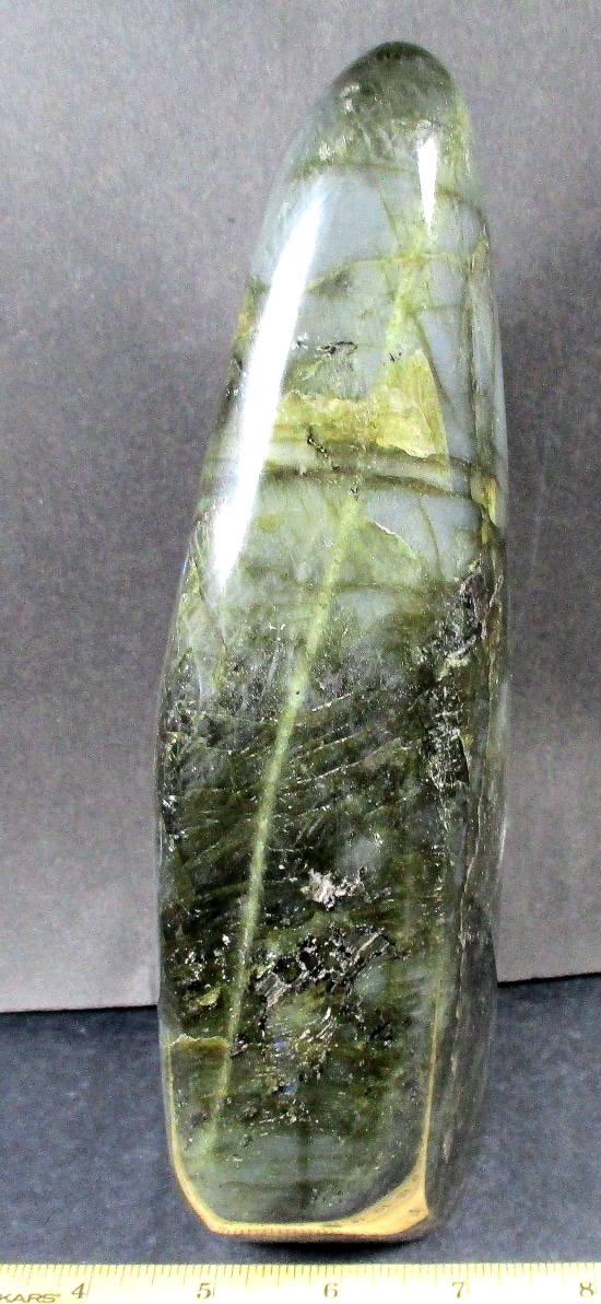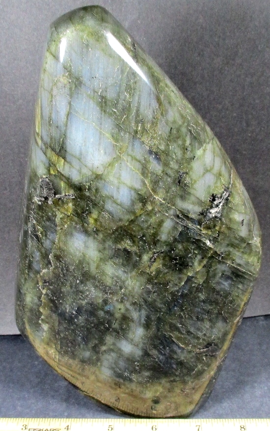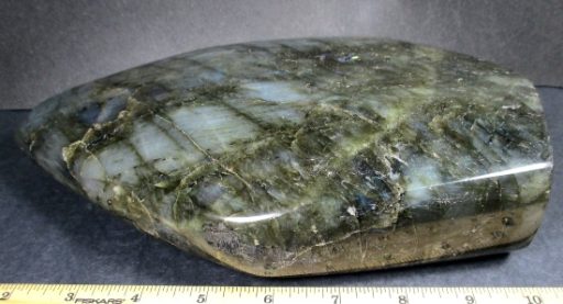 Labradorite is a Feldspar mineral that occurs in large Crystal masses in Anorthosite and shows an iridescence or “play of colors.” Gemstone varieties of Labradorite exhibiting a high degree of iridescence are Spectrolite, Moonstone and Sunstone. High quality samples with good iridescent qualities are desired for jewelry.