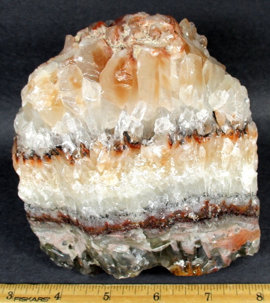 Calcite is a Carbonate mineral that is most widely distributed on the Earth’s surface. It is a common constituent of sedimentary rocks with Limestone in particular. A Calcite formation can take on many different shapes and sizes which is dependent on the location, ground water occurrence and temperature. Calcite is usually white or colorless but can be gray, red, yellow, green, blue, violet, brown or black. The deeper the color is usually indicative of the definitive impurities from the earth or water.