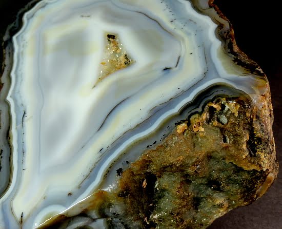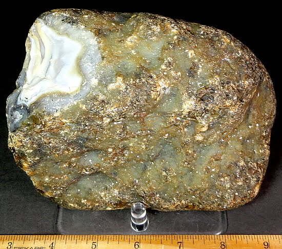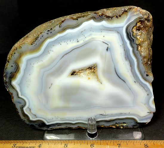 This is an exceptional piece of Zymara Agate that was cut and polished right here in our very own Lapidary Department. This very remarkable and interesting piece shows great detail.  The face has been cut and nicely polished and has a simply amazing design and fabulous banding. This unique specimen measures approximately 6 1/4″ x 4 7/8″ x 2 1/2″ thick.