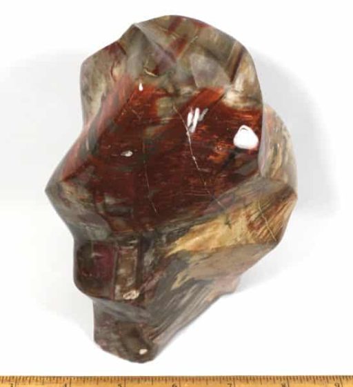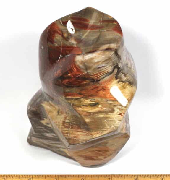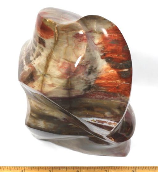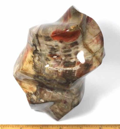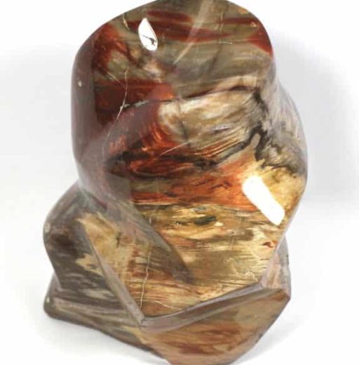 Here is a fabulous Petrified Wood Free Form from Madagascar.  It has an awesome array of colors ranging from reds to tan and gray in a wonderful design from any any angle or direction..  It measures almost 4 1/2″ at the widest x nearly 3 7/8″ x 5 3/4″ tall and has been nicely polished on all sides except the bottom.  Close inspection shows some healed fractures, common for this material.  A very beautiful addition to any rock collection.