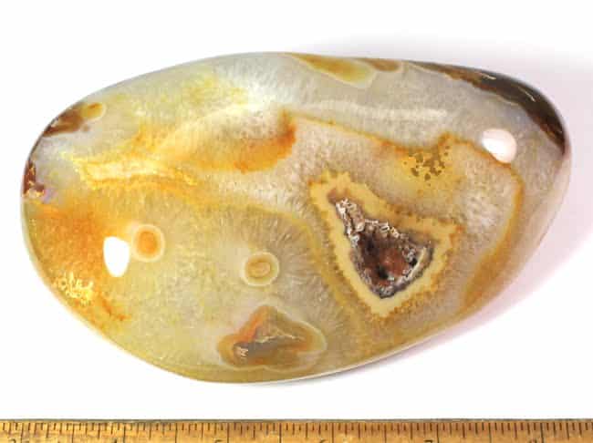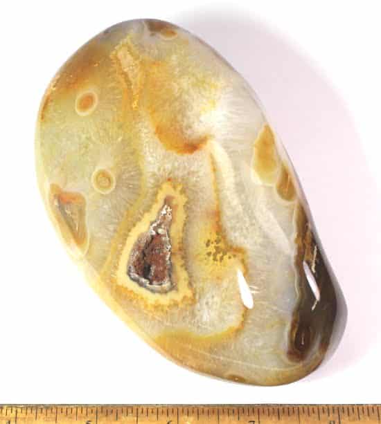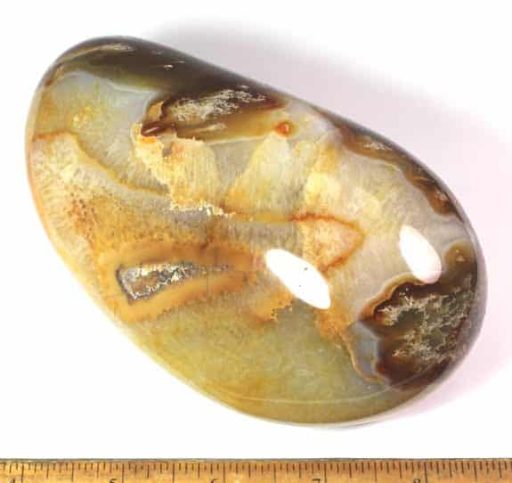 This is an amazing Carnelian Free Form from Madagascar with lots of character unique to this material.  This very cool item has darker background colors with Creamy accents and has an excellent design on each side of it.  Look at all the different views as each has character all it’s own.  Close inspection shows some healed fractures, common for Carnelian.  This beautiful Free Form measures 5 1/4″ x 3″ x nearly 2 1/8″ and weighs over 1 3/4 pounds.  A great addition to any collection or a super nice gift.