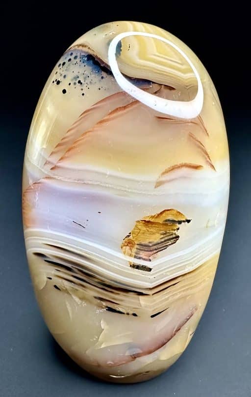 Appearance: The excellent polish brings out the fabulous design and accents unique to the Black Skin Agate.